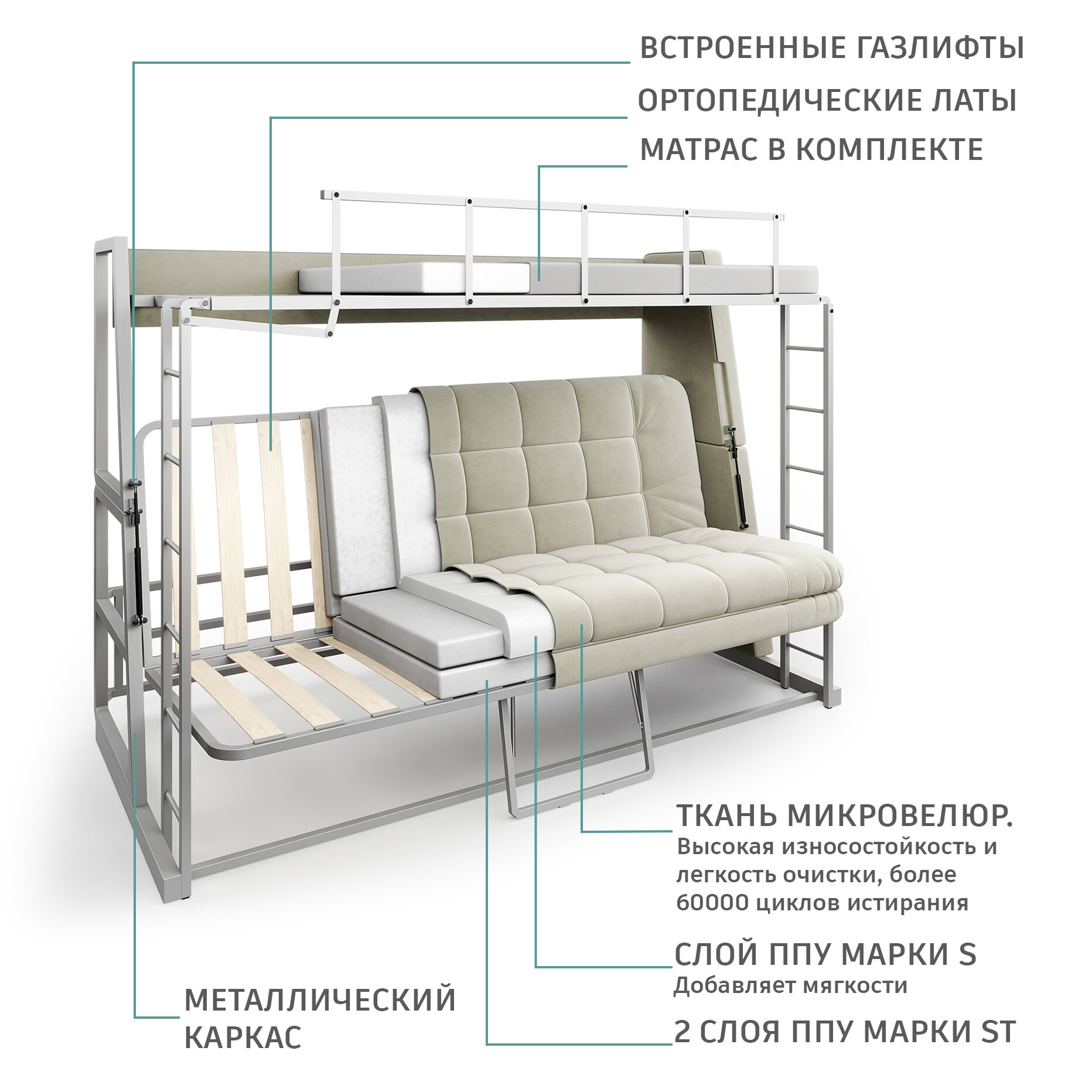 Двухъярусный диван трансформер BCT01 информация: