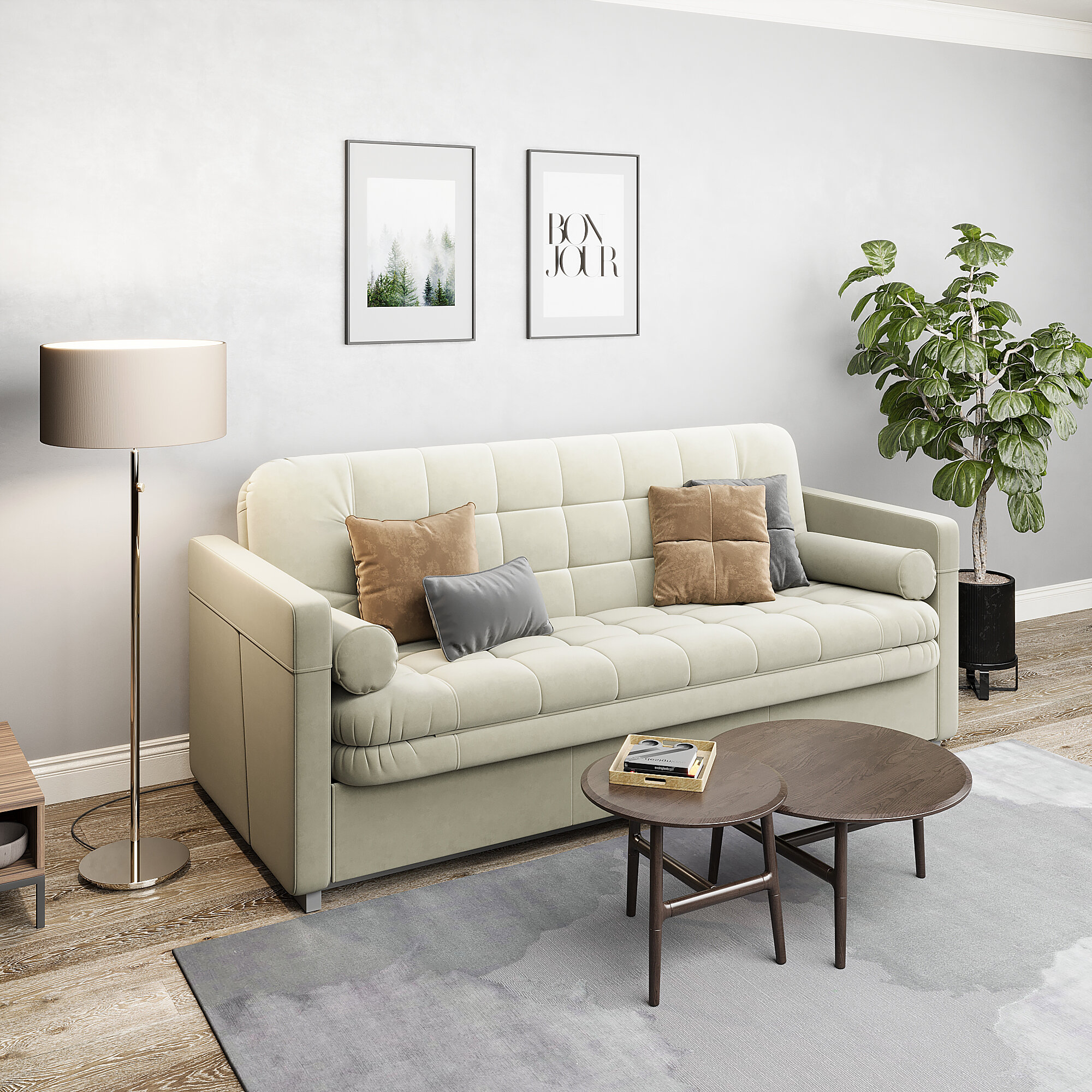 Диван-кровать прямой Верро размер: 203х100х86 см, еврокнижка, Ладья, в гостиную, спальню, спальное место: 200х150 см, Velutto 53