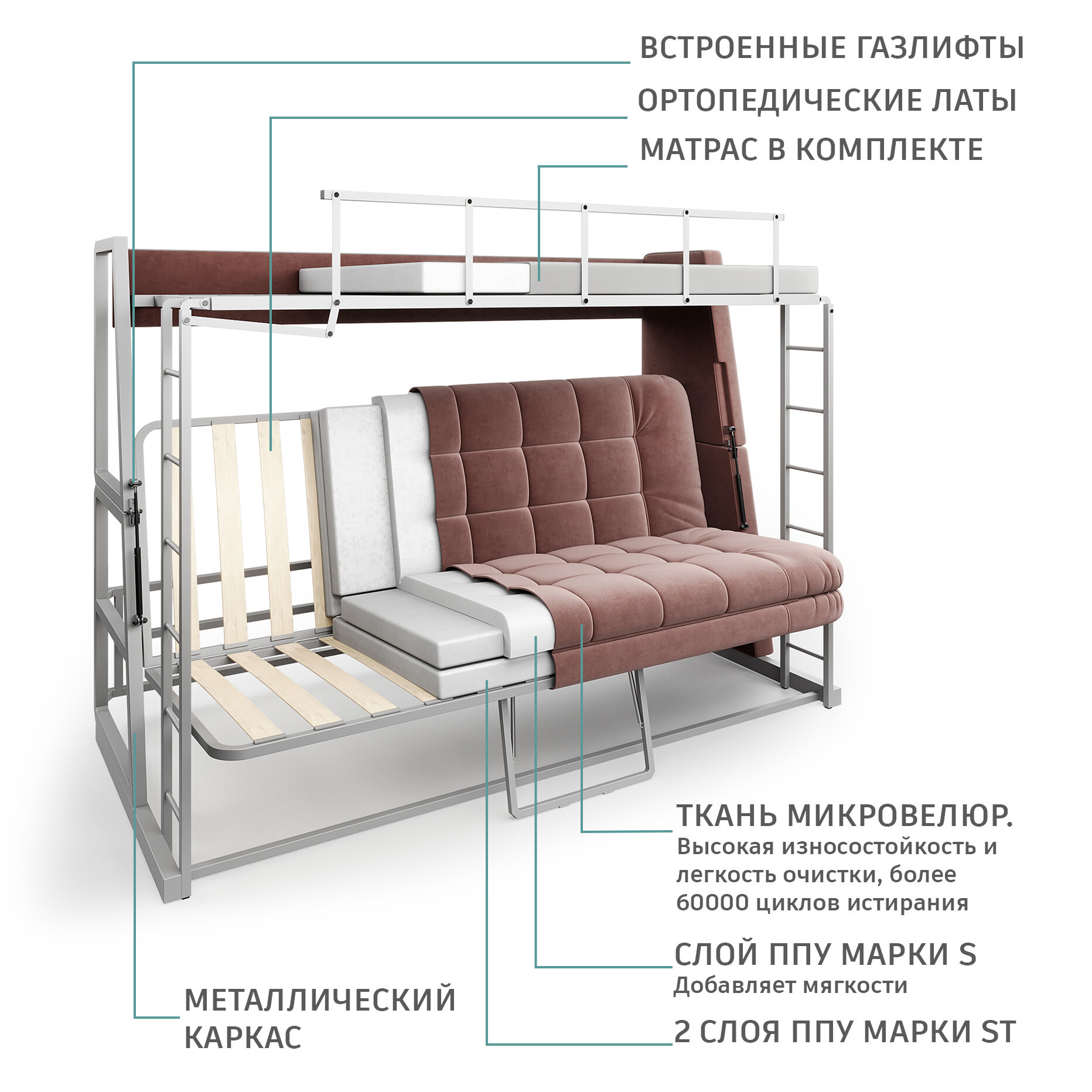 Двухъярусный диван трансформер BCT09 информация: