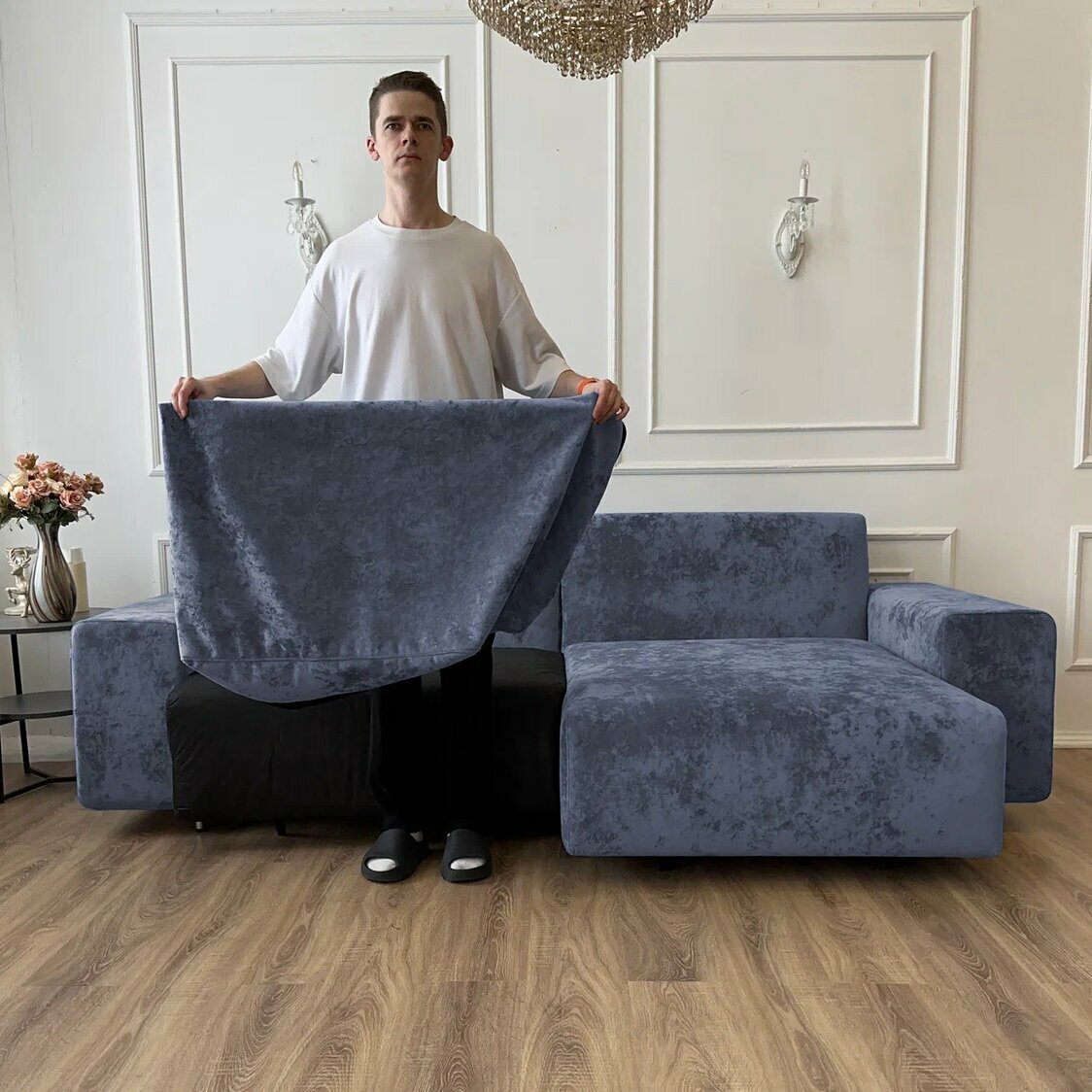 Диван-кровать Redsofa Аурис 260 см синий Teddi. Раскладной угловой диван со съемными чехлами, для дома и офиса (Мебельный гарнитур бытового назначения) 76 990 ₽
