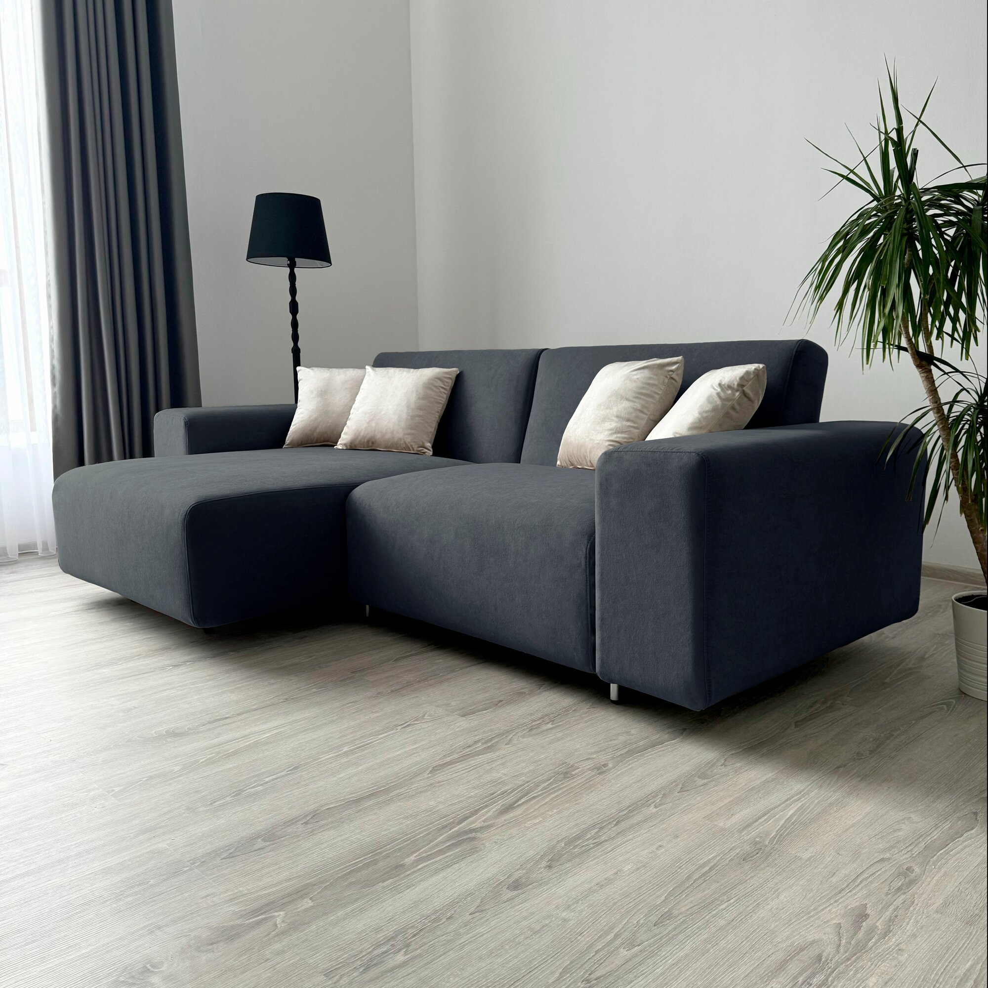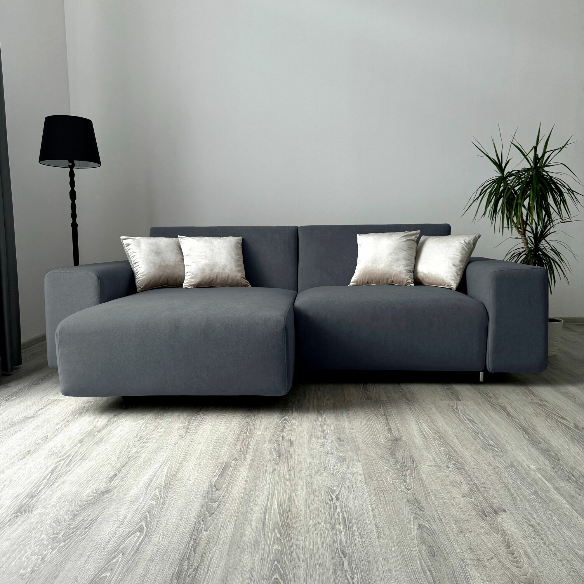 10 цен на Диван-кровать Redsofa Аурис 260 см графит Teddi. Раскладной угловой диван со съемными чехлами, для дома и офиса.