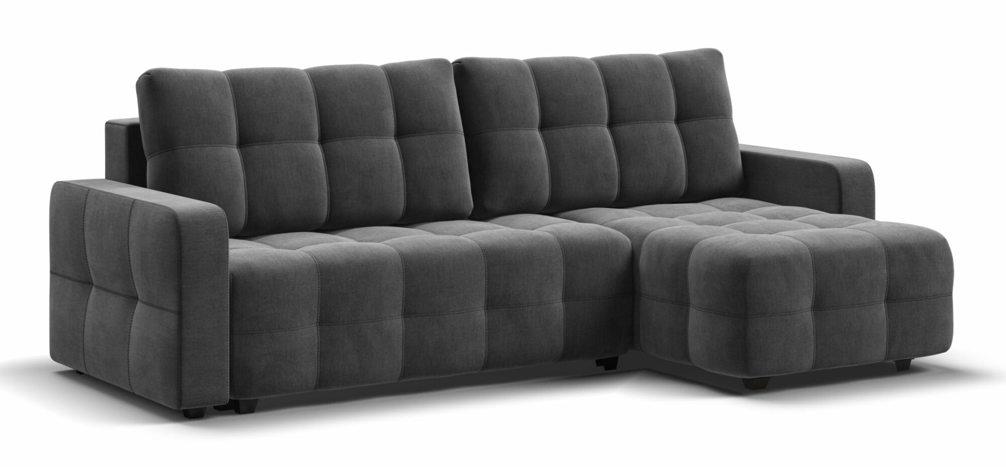 Угловой диван Много мебели Дубай 3.0, велюр Monolit серый/сталь, 300x155x87 см, НПБ 46 599 ₽