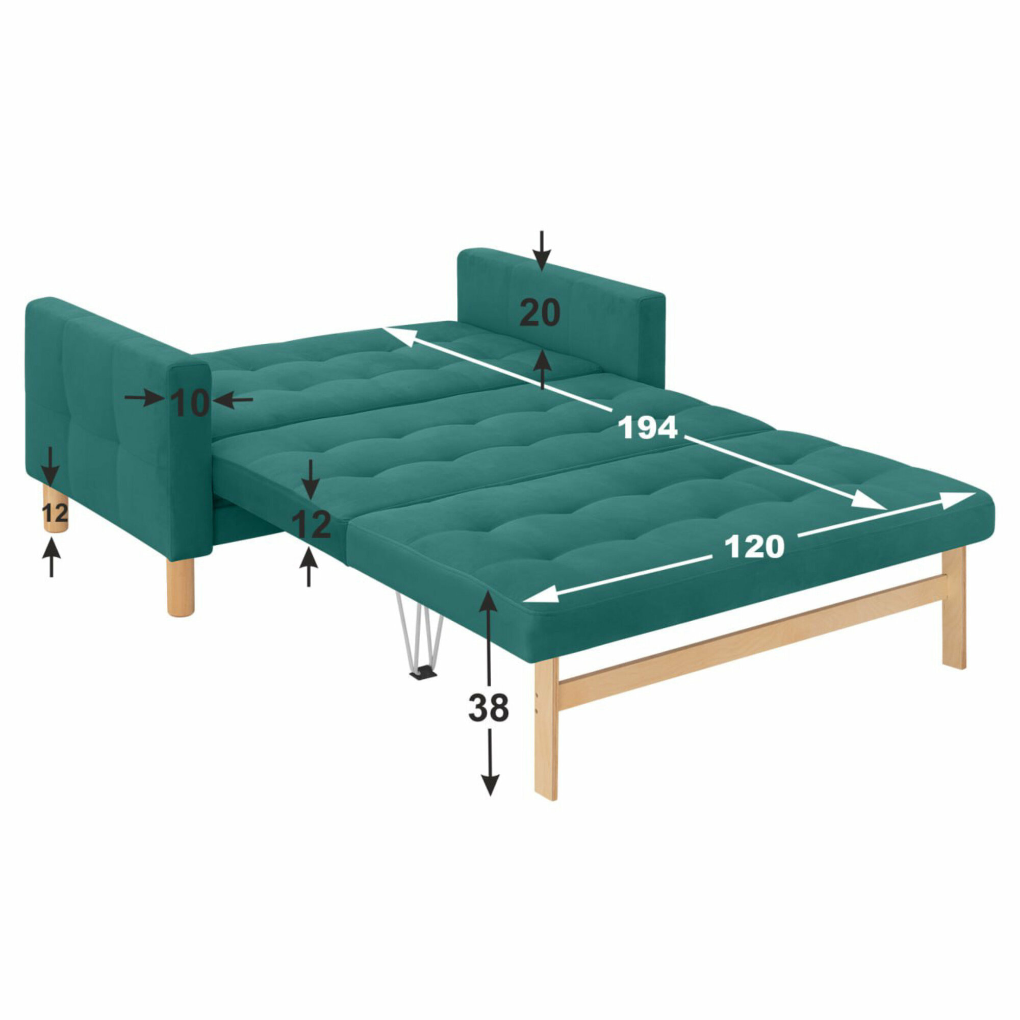 10 цен на Диван-кровать Монро-макси, прямой, 137*80*81, спальное 120*194, велюр лазурный, Велутто 20
