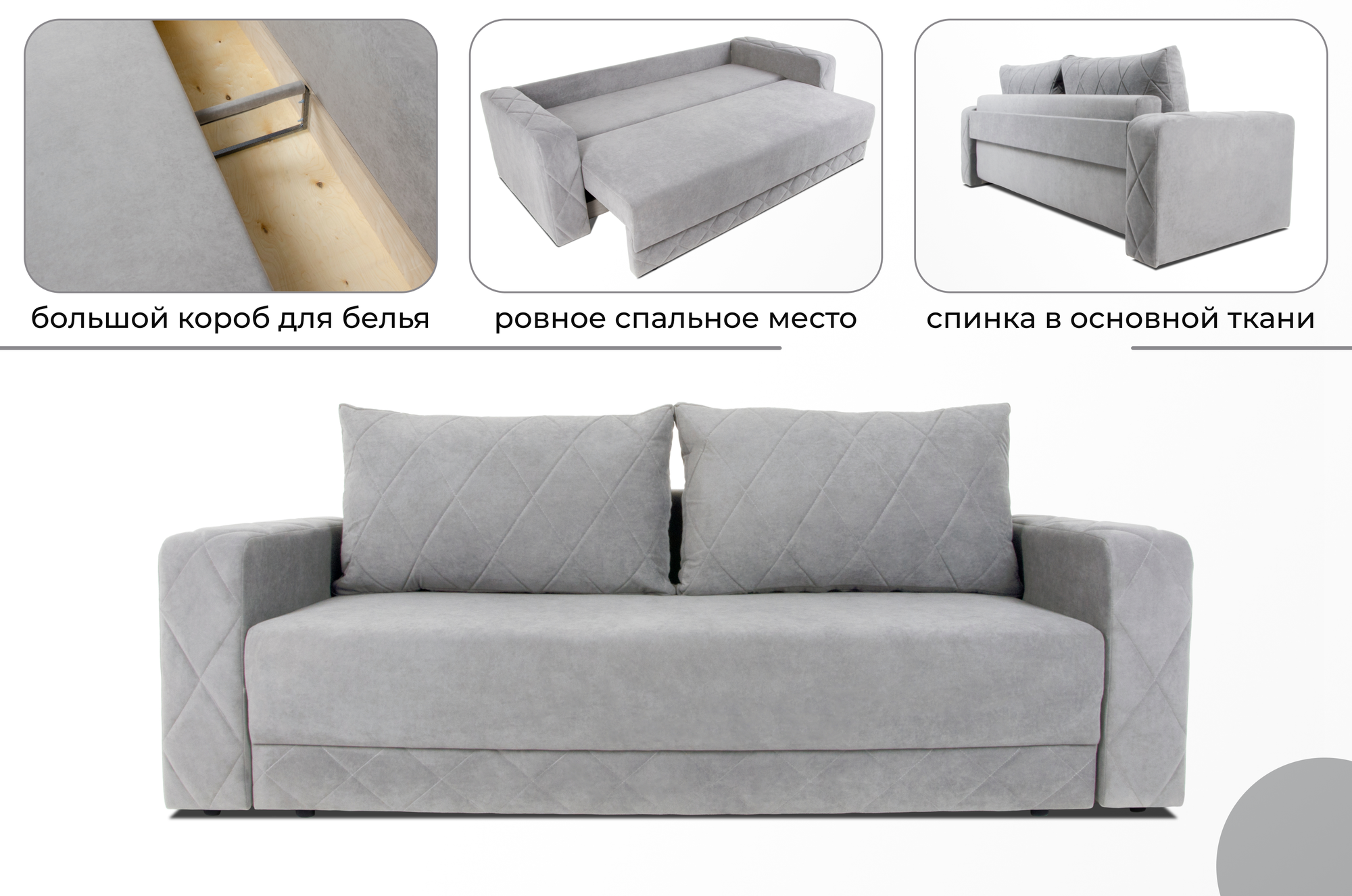 | Особенности | раскладная конструкция, с подлокотниками, ящик для белья |