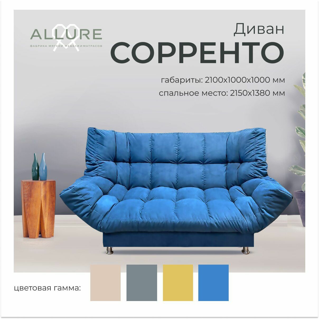 0 отзывов, средняя оценка 0. Чтобы купить «Диван раскладной прямой "Сорренто", 210х100х100, ALLURE, велюр синий, механизм Клик-кляк, подходит для спальни, детской, гостиной, прихожей, дачи, сада, балкона» по лучшей цене мы сканируем авито, алиэкспресс, маркет, озон, савеловский, плеер, горбушку, беру, официальные сайты и находим минимальную. Администрация не несет ответсвенность актуальность цен на Диван раскладной прямой "Сорренто", 210х100х100, ALLURE, велюр синий, механизм Клик-кляк, подходит для спальни, детской, гостиной, прихожей, дачи, сада, балкона, более подробно узнавайте на сайте магазина.