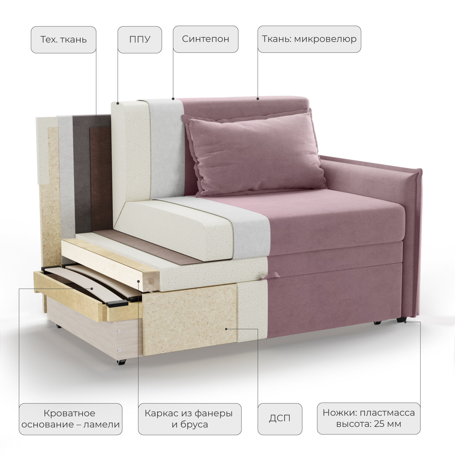 Диван-кровать, диван раскладной, прямой NRAVA Candy 1400х805х800 Брусничный информация:
