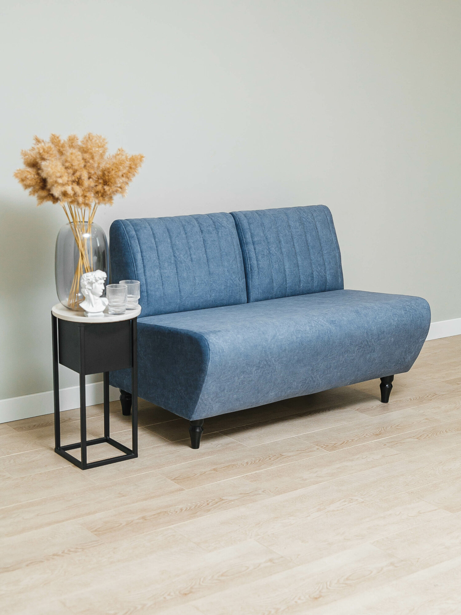 Диван прямой мини без подлокотников Ромео для кухни, гостиной, офиса голубой информация: