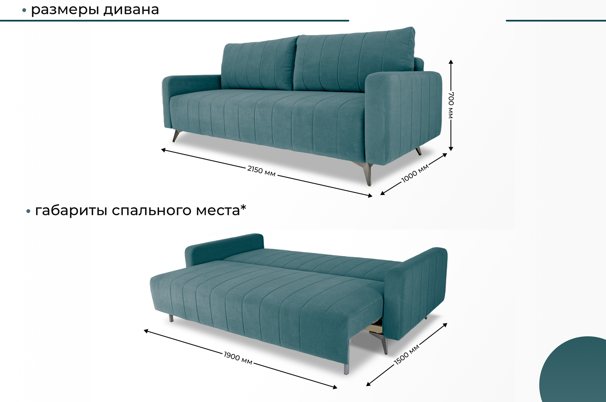 Диван кровать Скай прямой 220 х 94 х 97 , голубой