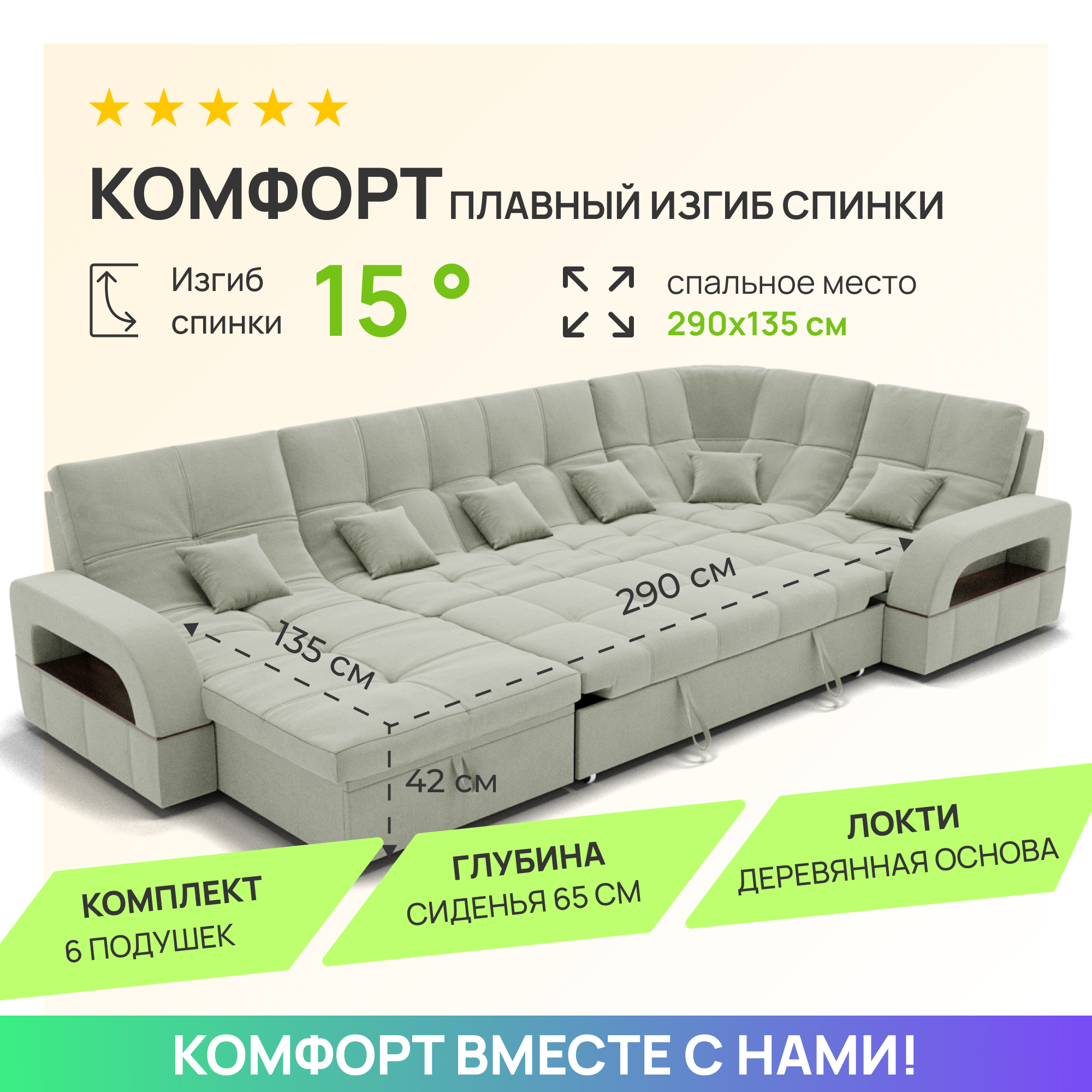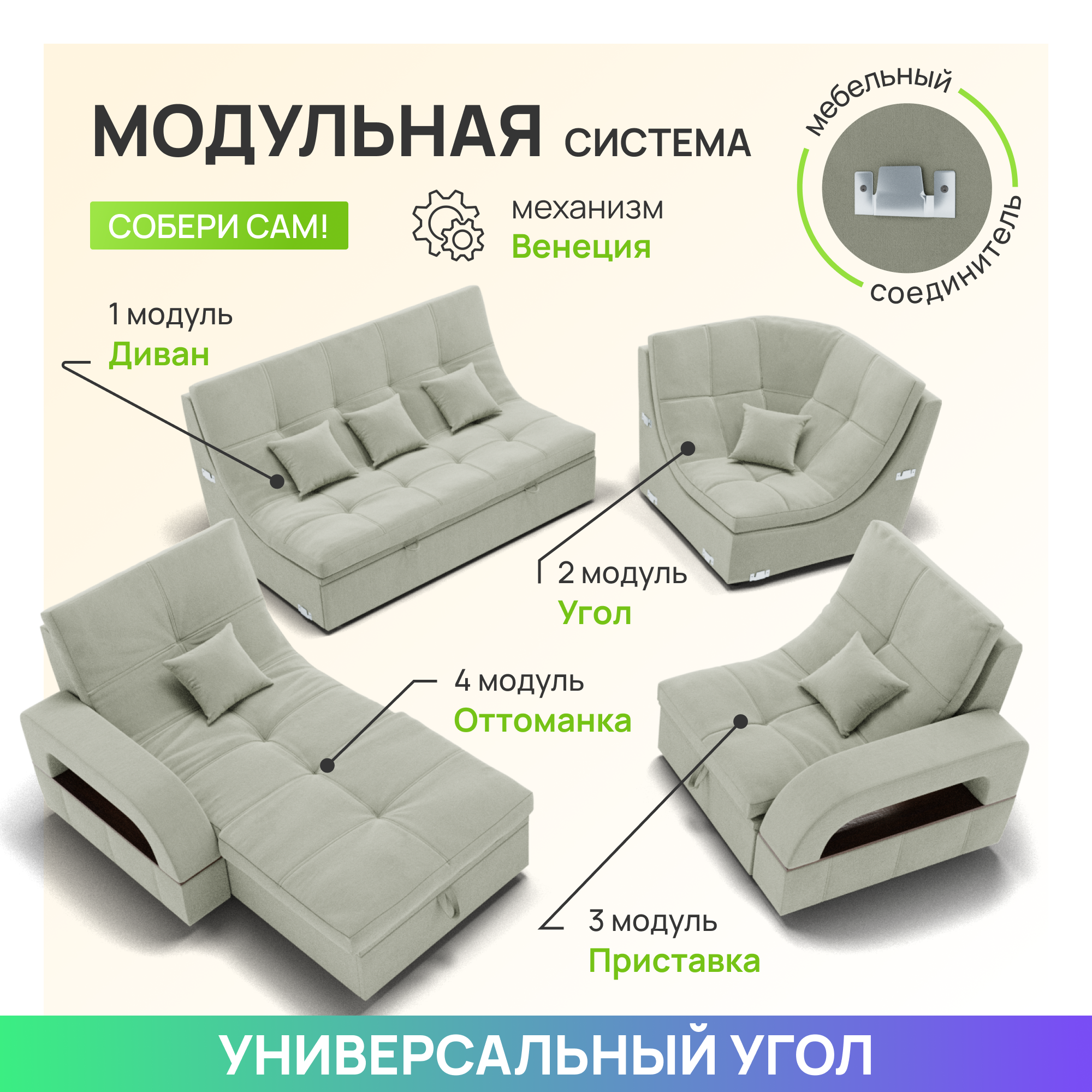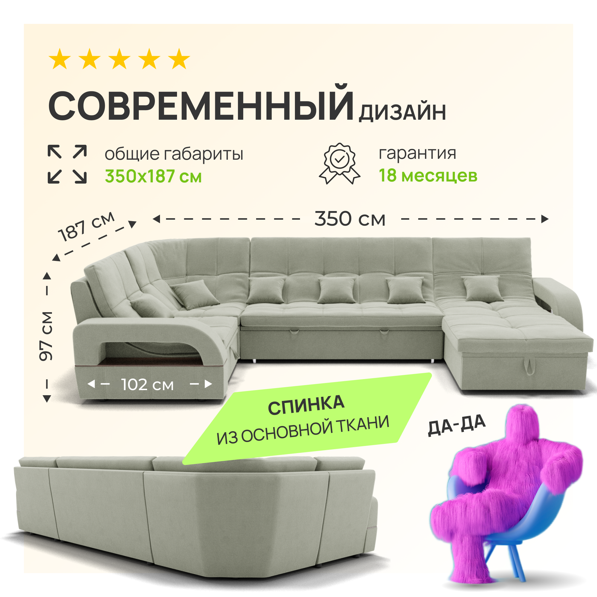 10 цен на Модульный диван, Майами-4 , Велютта люкс 14 премиум класса YORCOM,350x135x97 Светло-зелёный. Велюр,ППУ,ДВП,Дерево,механизм Венеция.