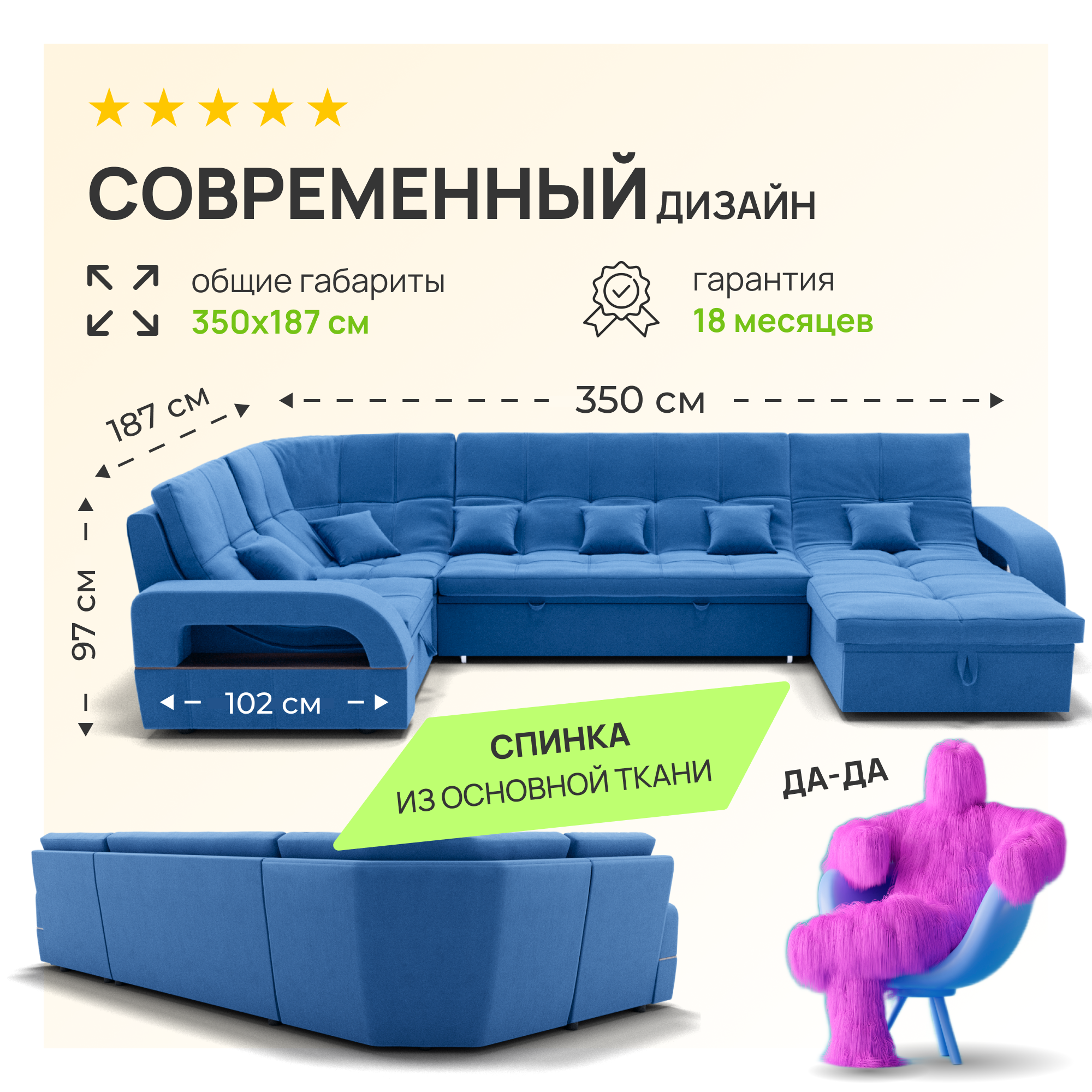 10 цен на Модульный диван, Майами-4 ,Велютта люкс 45 премиум класса YORCOM,350x135x97,Голубой. Велюр,ППУ,ДВП,Дерево,механизм Венеция.