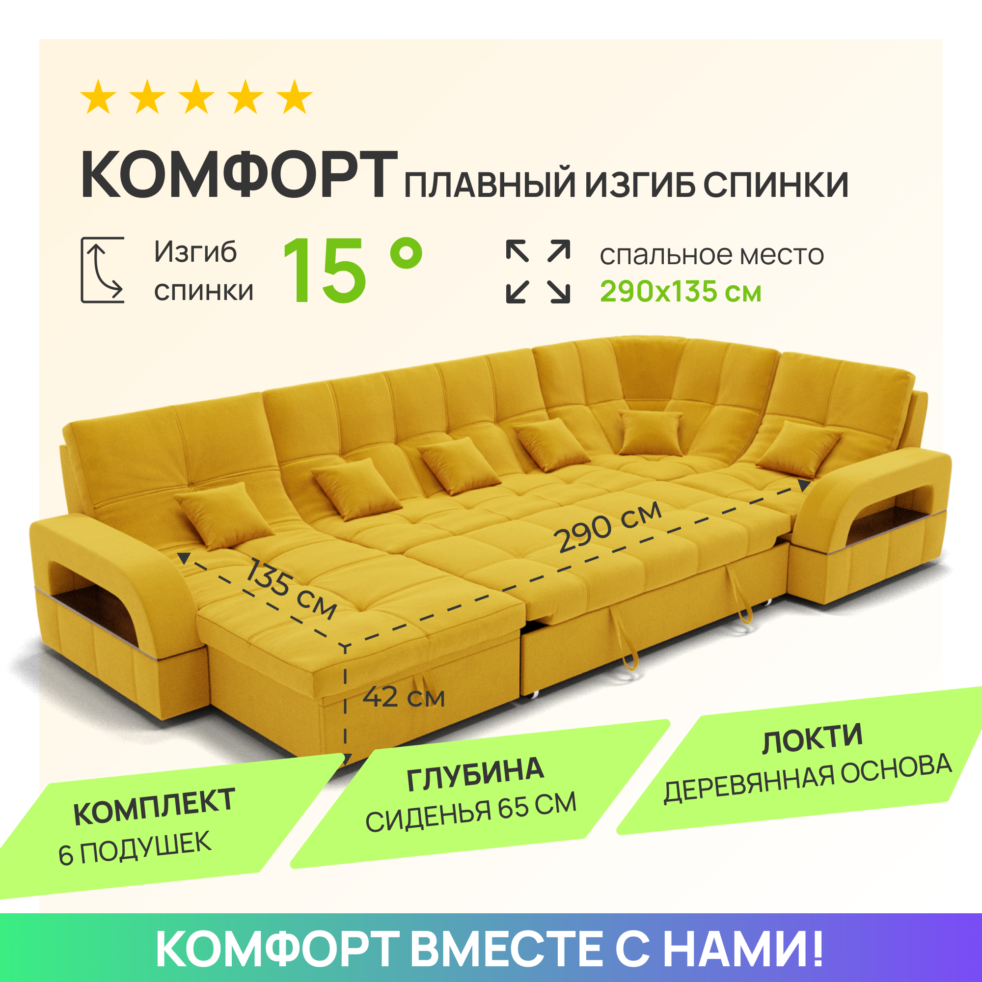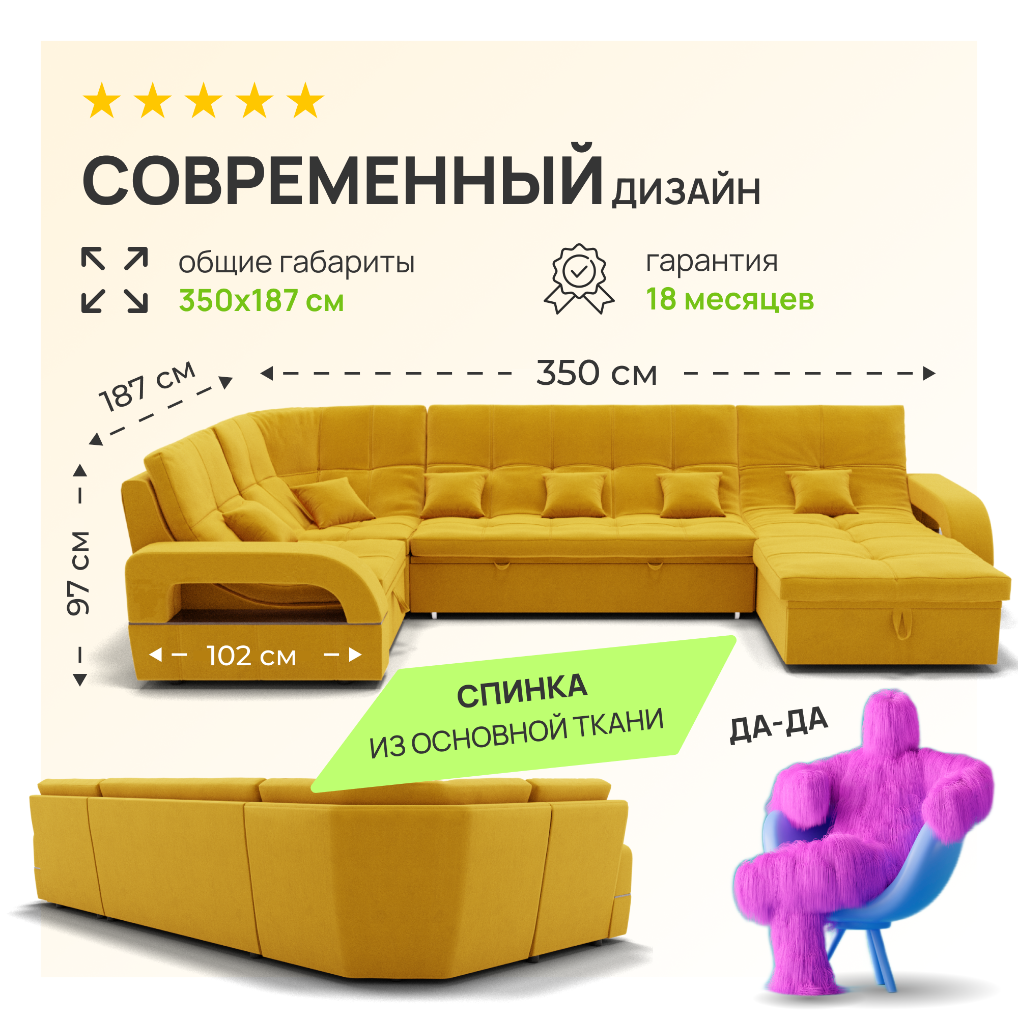 10 цен на Модульный диван, Майами-4 ,Велютта люкс 40 премиум класса YORCOM,350x135x97,Жёлтый. Велюр,ППУ,ДВП,Дерево,механизм Венеция.