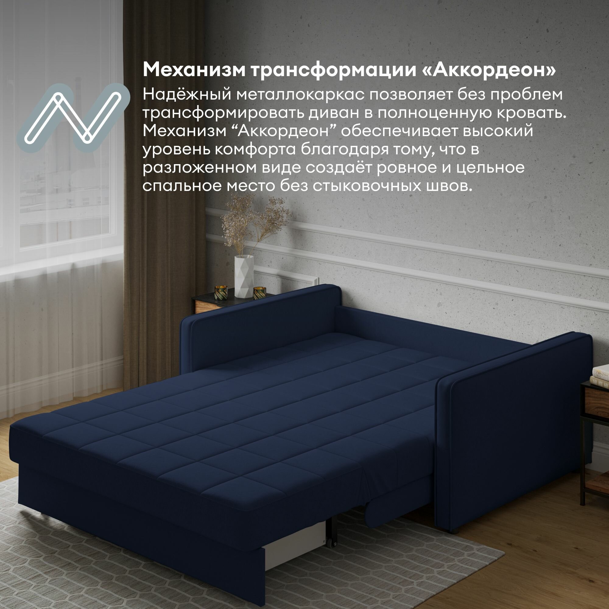 Диван-кровать Аккордеон HYPNOZ Grenada 140, Синий информация: