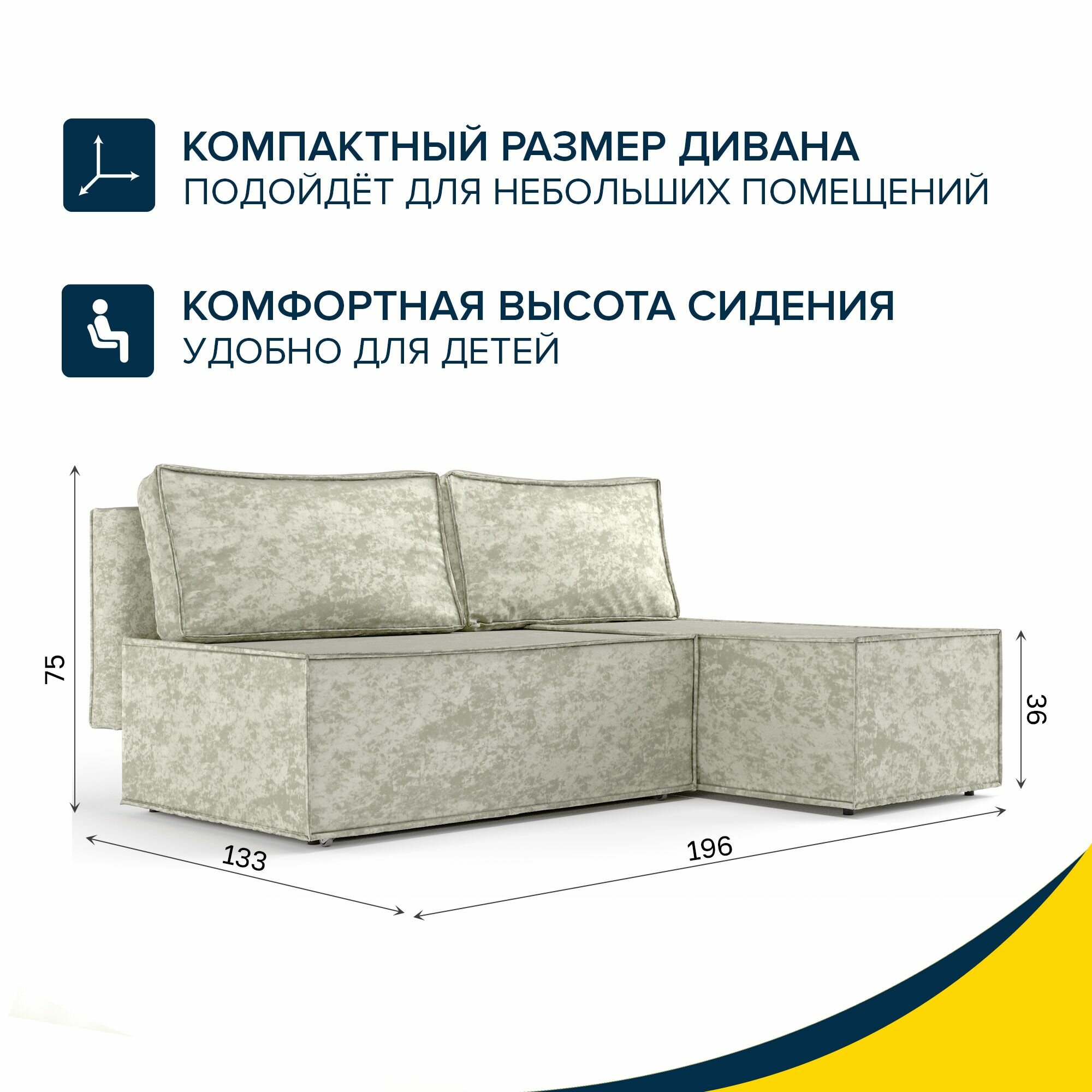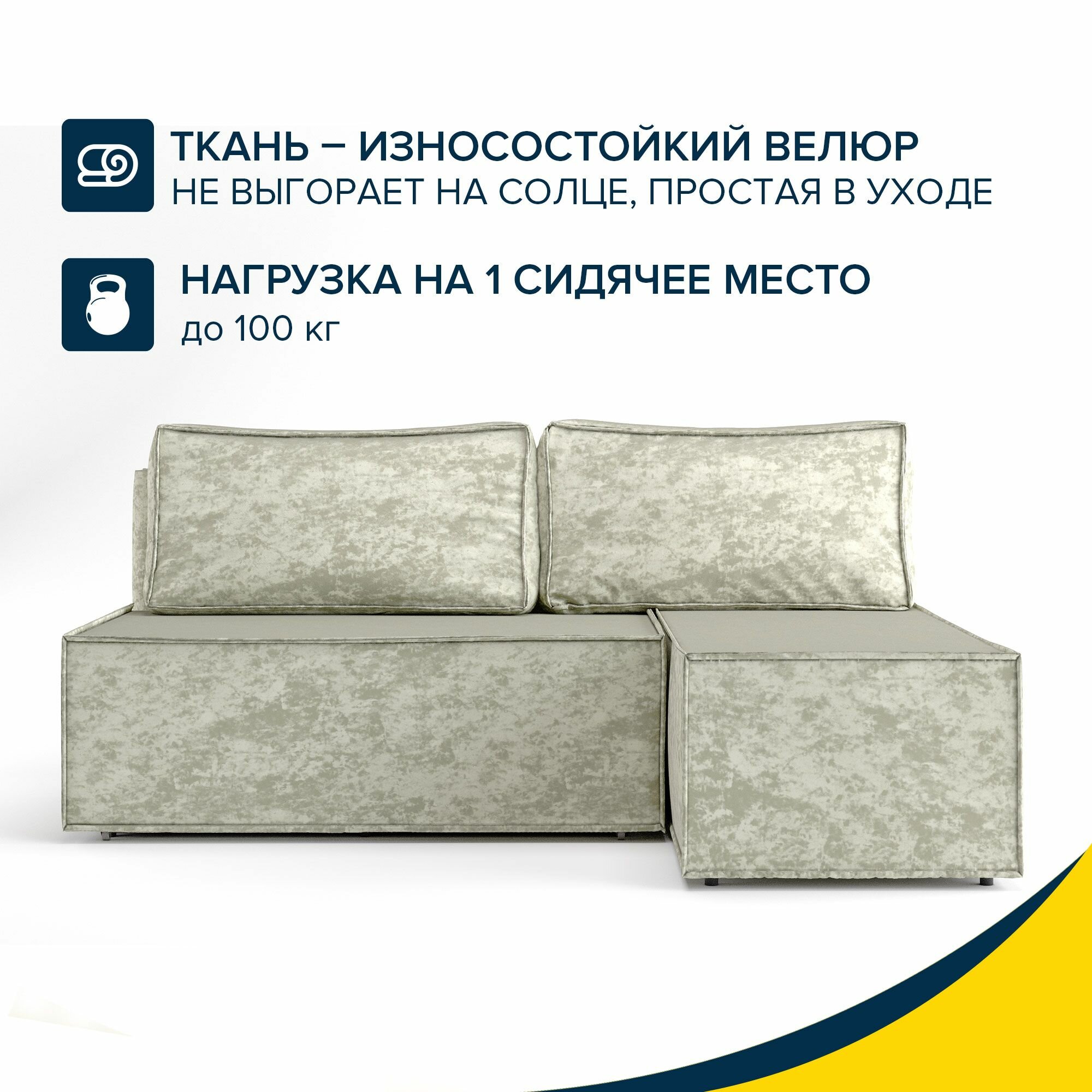 Диван угловой Beneli киото, бежевый, велюр, механизм Еврокнижка, 196х133х75 см, 1шт информация:
