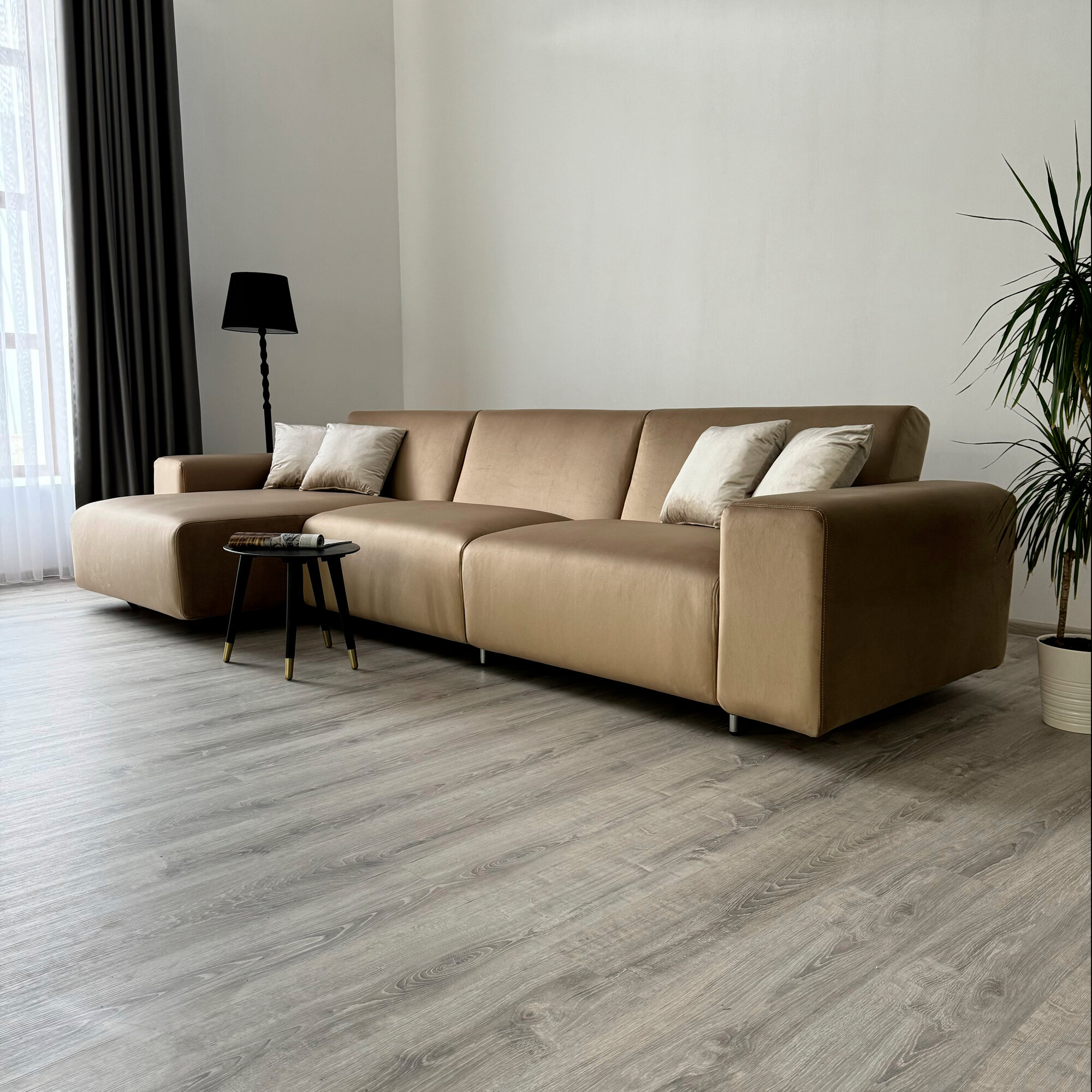 Диван-кровать Redsofa Аурис 360 см темно-бежевый антивандальный. Раскладной угловой диван со съемными чехлами Редсофа, для дома и офиса. информация: