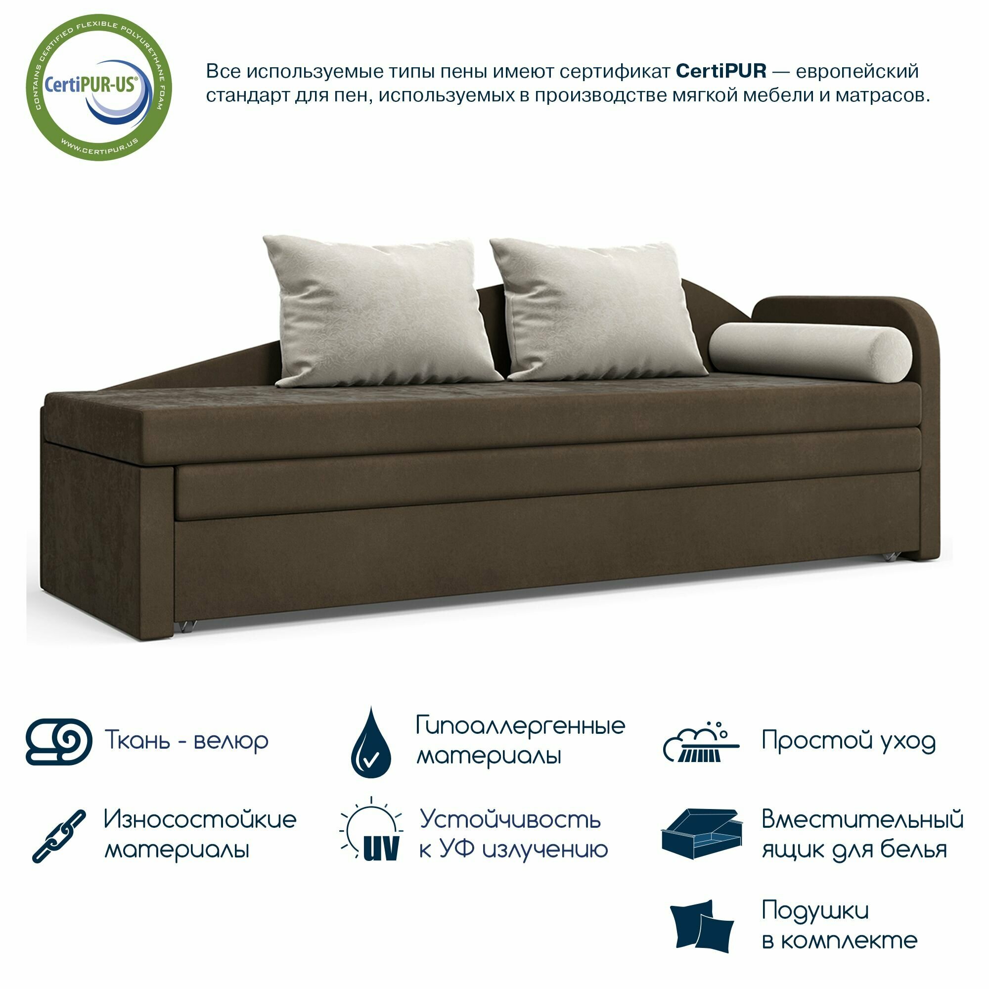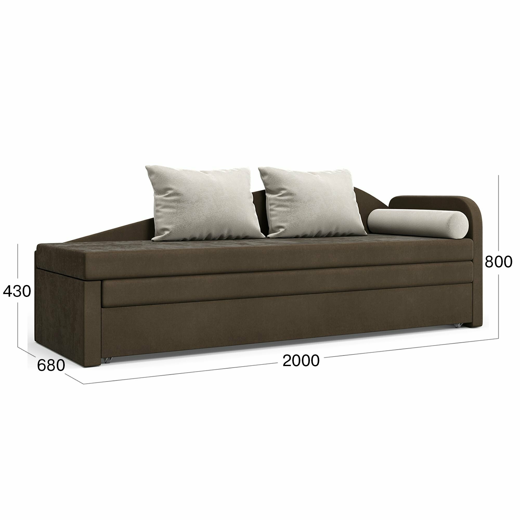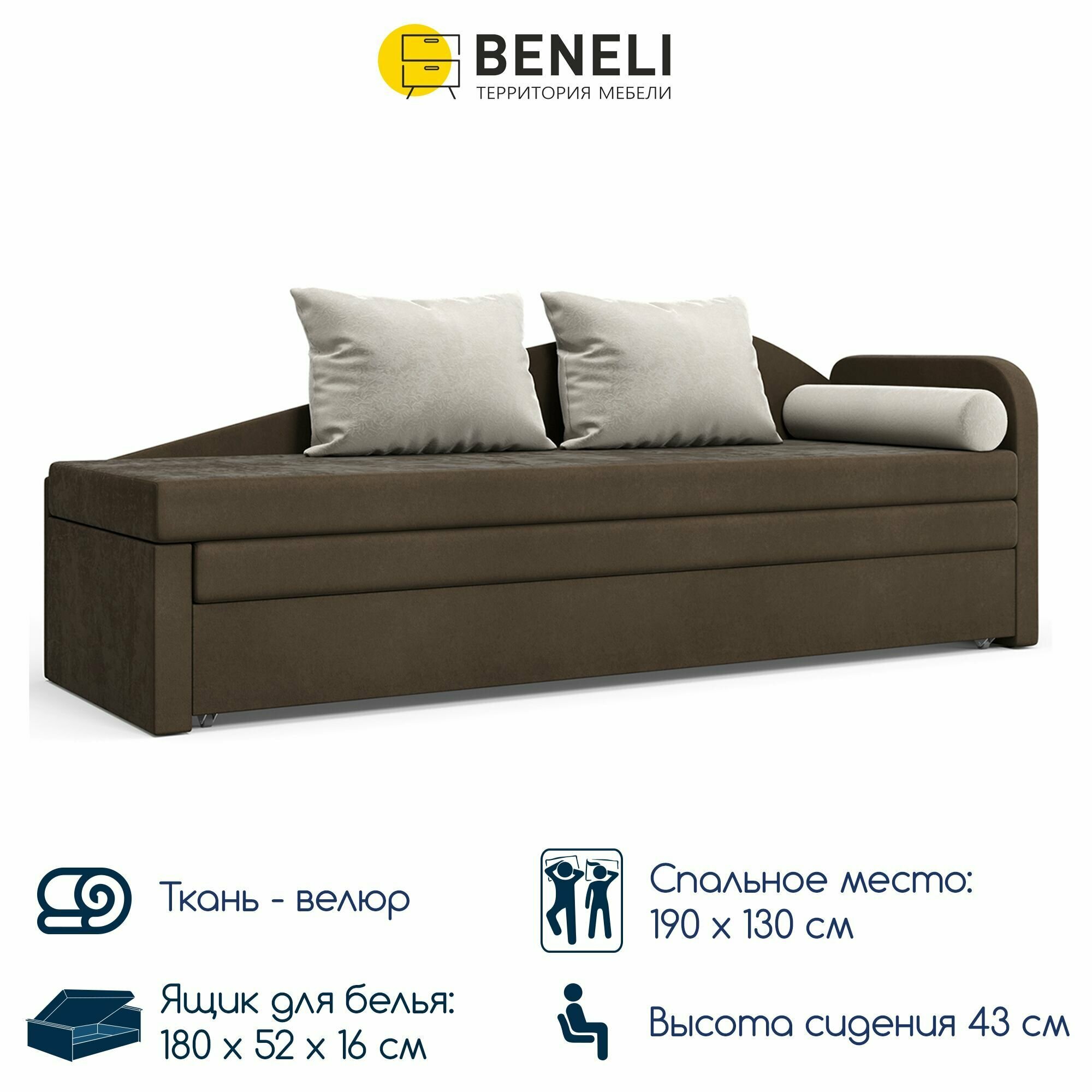 Диван-кровать, кушетка, прямой диван Beneli арчи (правый), раскладной, с ящиком для хранения, коричневый, Велюр, механизм Выкатной, 200х68х80см, 1шт информация: