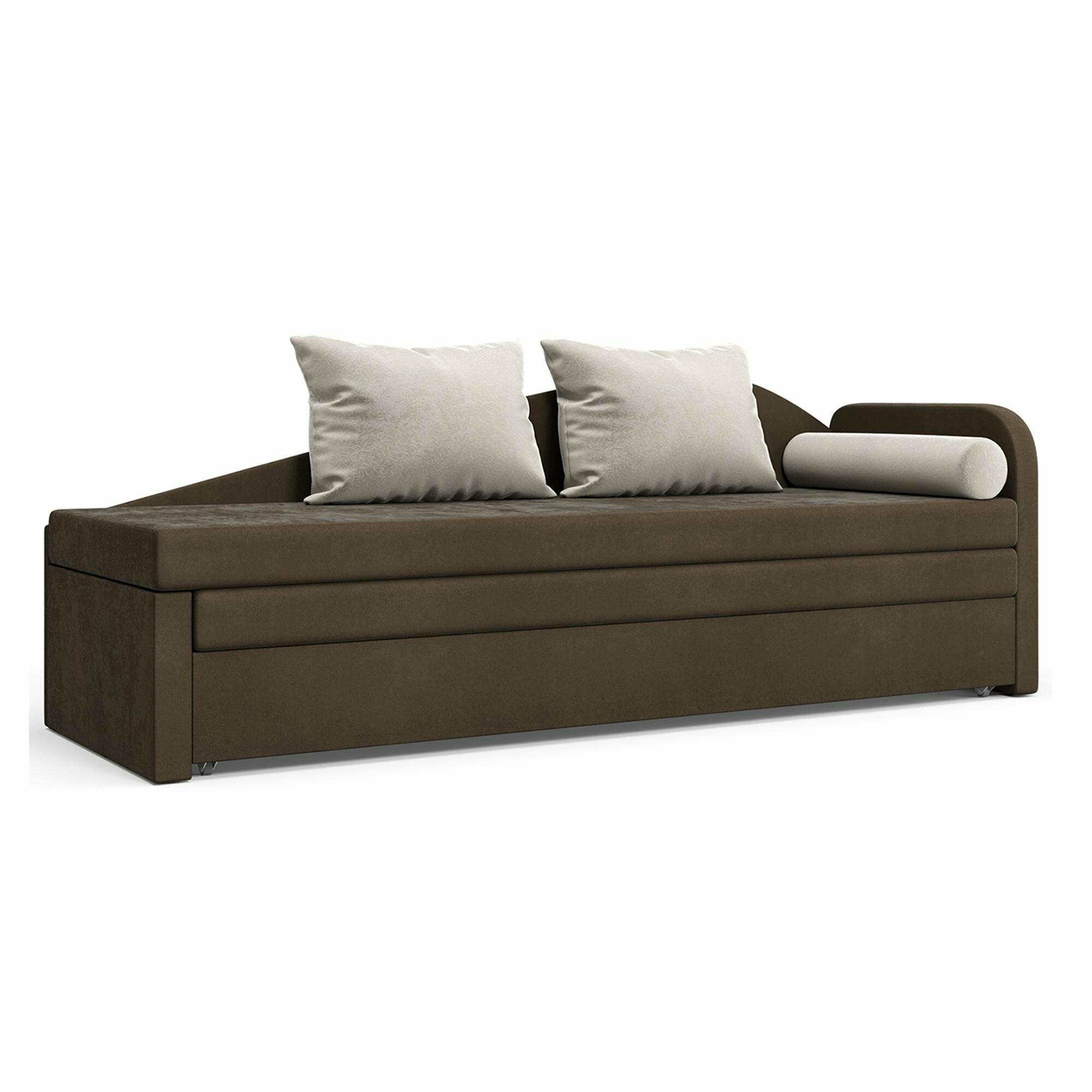 10 цен на Диван-кровать, кушетка, прямой диван Beneli арчи (правый), раскладной, с ящиком для хранения, коричневый, Велюр, механизм Выкатной, 200х68х80см, 1шт