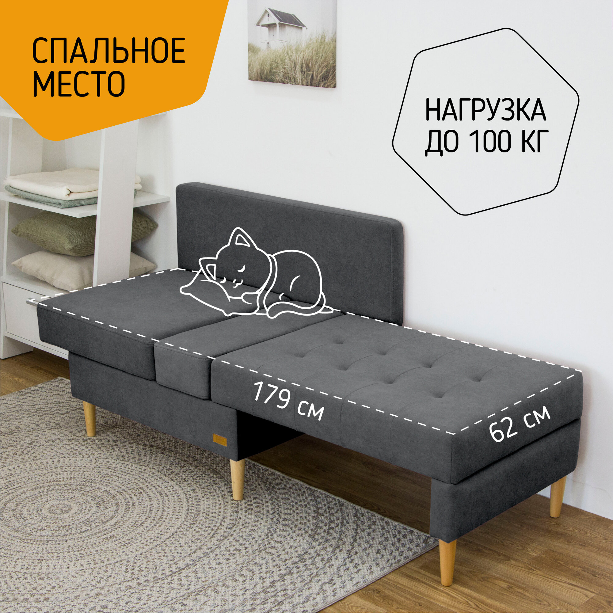 | Дополнительная информация | Удобен на кухне у стола. Удобно сидеть, есть дополнительное спальное место и ящик. Также часто покупают в детскую и на балкон. |
