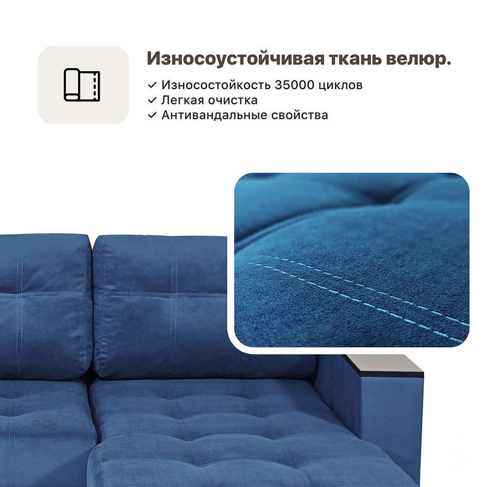 Диван - кровать на независимом пружинном блоке Инвуд 2 угловой двухместный, Велюр, синий / Velutto 26 45 594 ₽