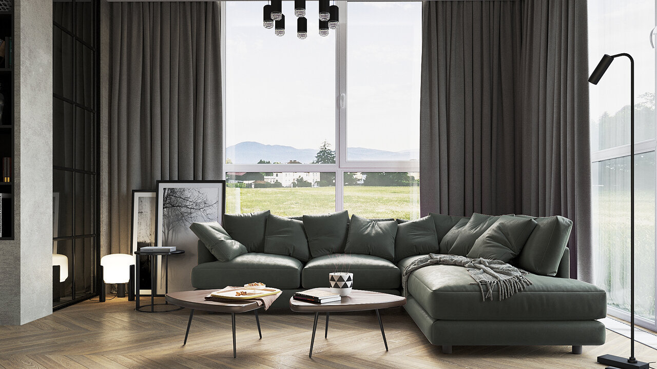 Диван угловой Атланта М левый угол, велюр серый, вставка велюр черный