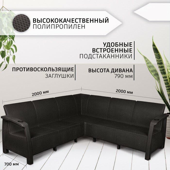 Диван угловой Альтернатива Ротанг-Плюс М8838 (коричневые подушки) 200*200*79 см, мокко/темно-коричневый информация:
