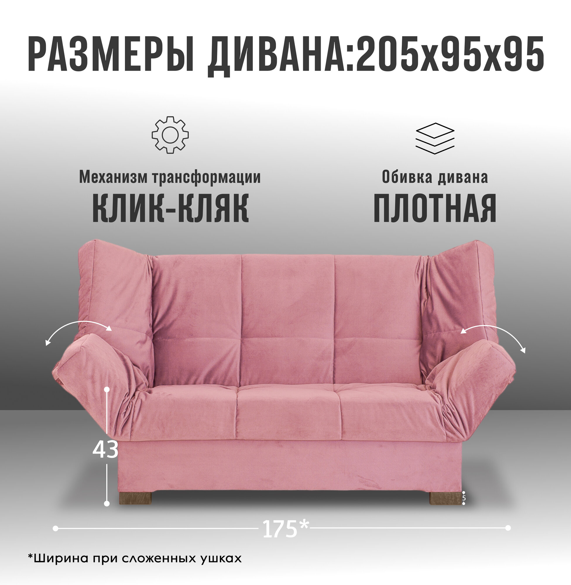 Раскладной диван кровать с ортопедическим основанием Джакарта, механизм клик кляк, 205х95х95 см, розовый информация: