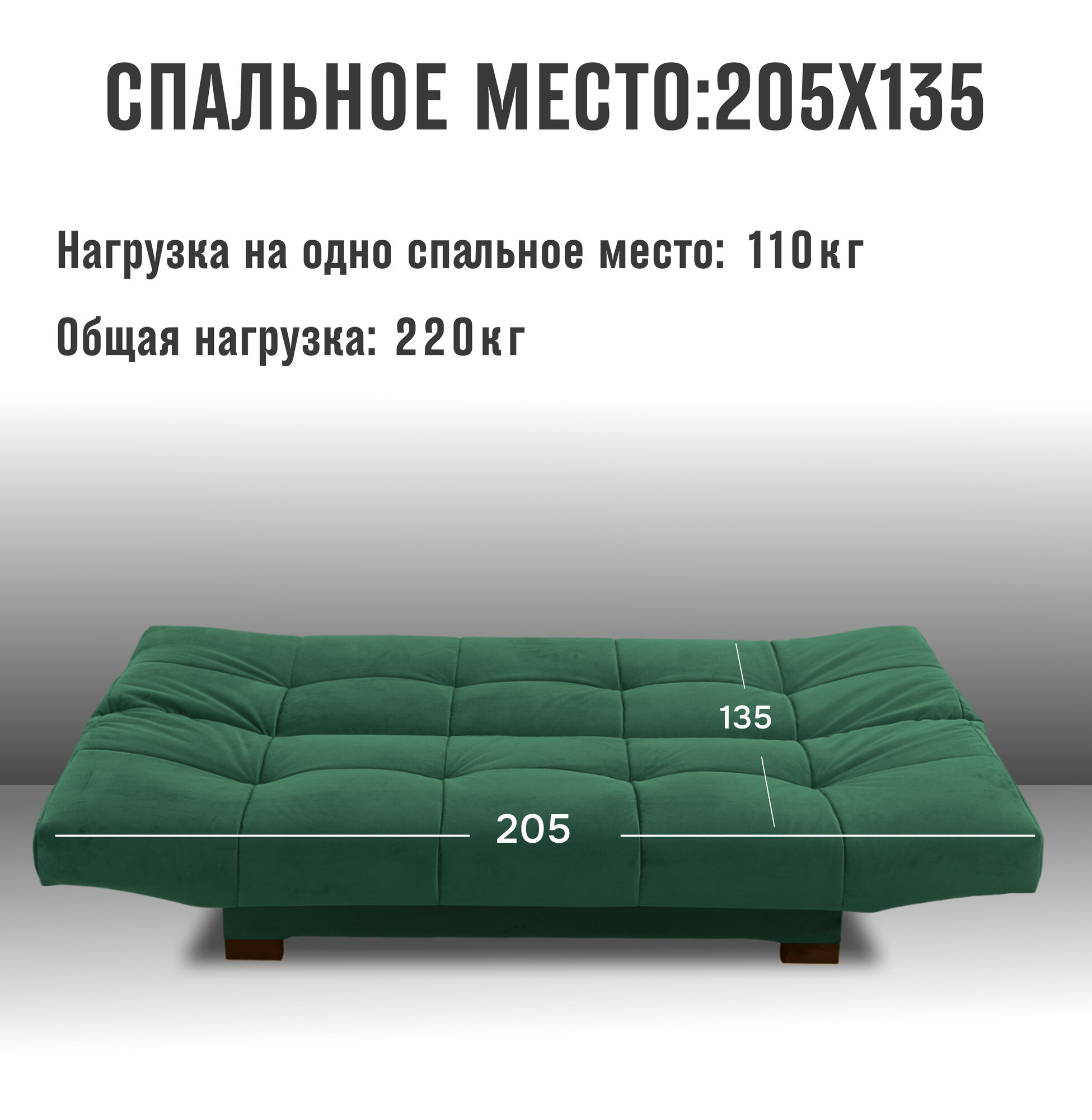 Раскладной диван кровать с ортопедическим основанием Джакарта, механизм клик кляк, 205х95х95 см, зеленый информация: