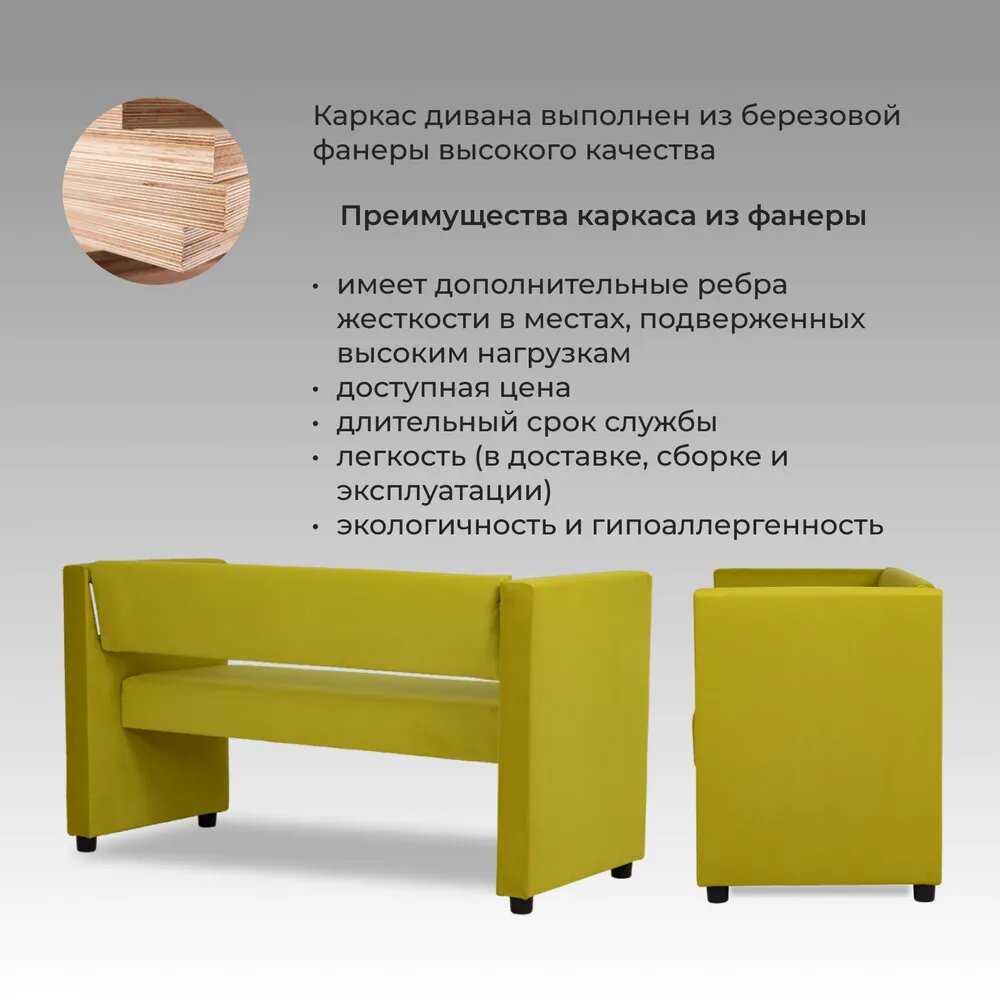 Прямой диван Берри желтый, велюр, для дома, офиса Divan24 информация: