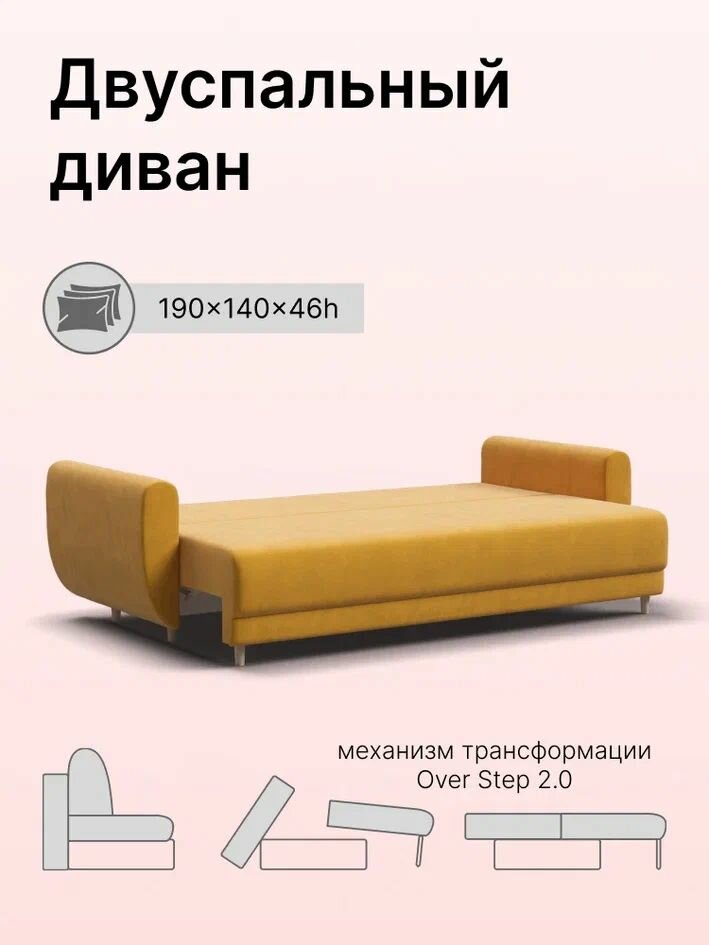 Отзывы на Диван-кровать с ящиком для хранения Астон New, пантограф, велюр Monolit желтый, 219х96х90 см