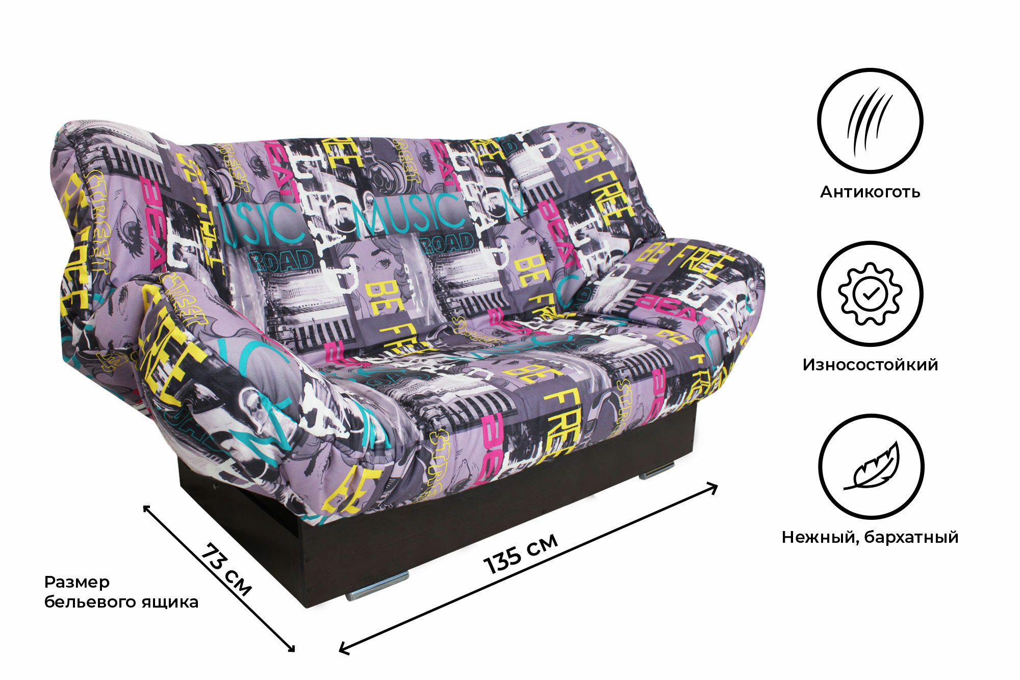 Диван-кровать прямой Верро размер: 203х100х86 см, еврокнижка, Ладья, в гостиную, спальню, спальное место: 200х150 см, Velutto 53