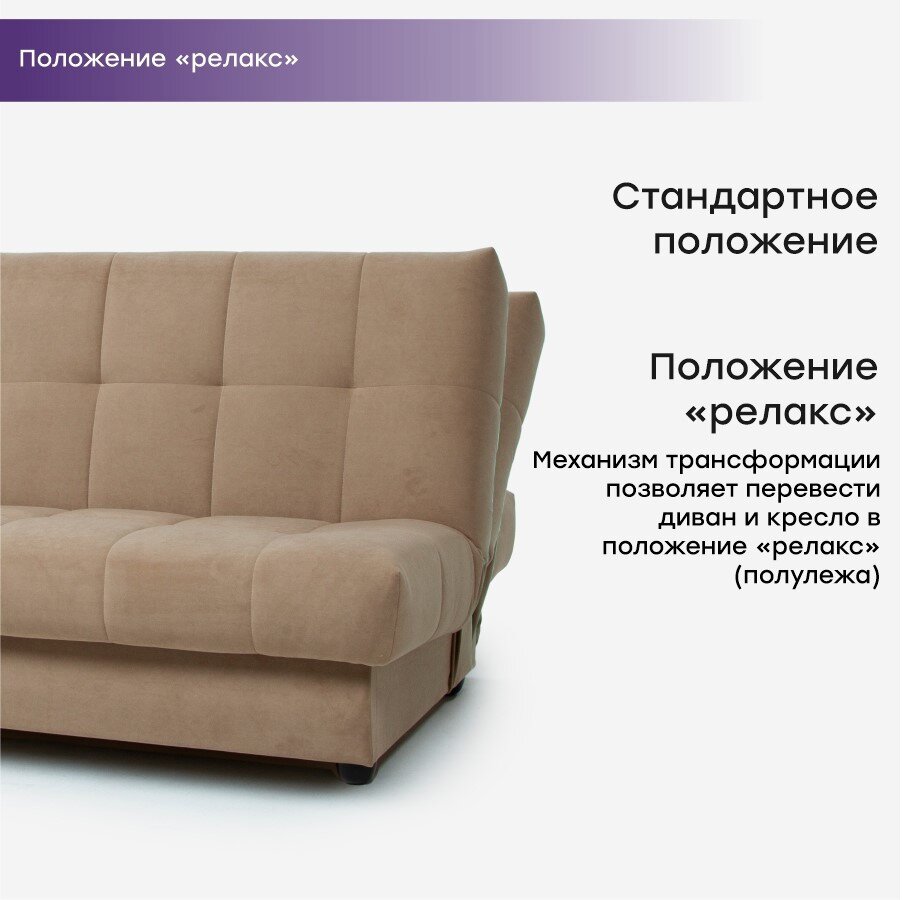 Диван мягкий кресло и пуф Венера механизм клик - кляк, материал износостойки велюр, цвет коричневый, Мебельная Фабрика Аврора 63 200 ₽