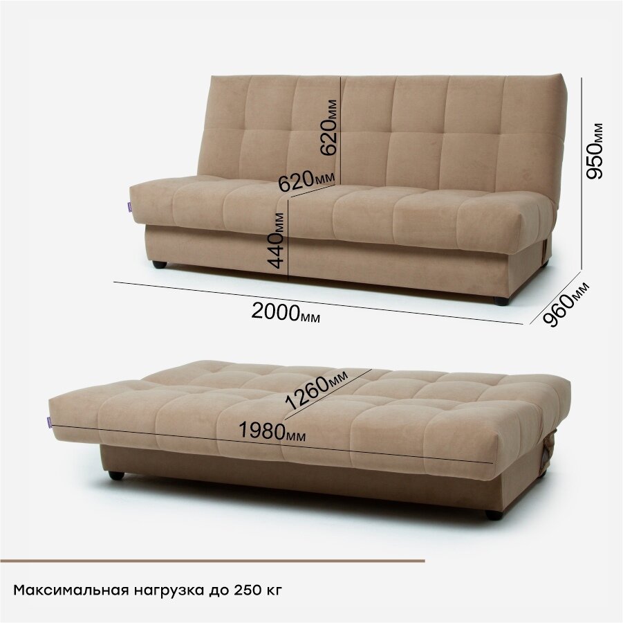 Диван кровать Венера прямой с положением релакс, механизм клик-кляк, 2000 × 960 × 950 ,цвет бежевый, Мебельная фабрика Аврора информация: