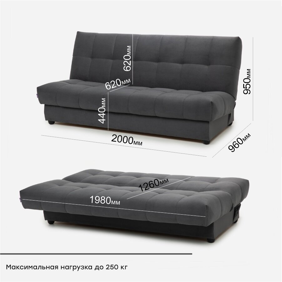 Диван кровать прямой с положением релакс Венера , механизм клик-кляк, 2000 × 960 × 950 ,цвет серый, Мебельная Фабрика Аврора информация: