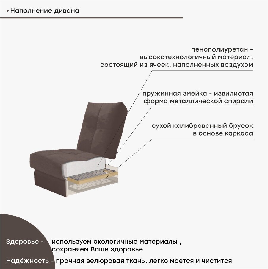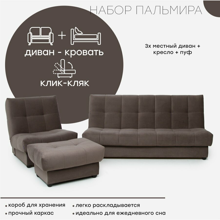 Диван мягкий кресло и пуф Венера механизм клик - кляк, материал износостойки велюр, цвет коричневый, Мебельная Фабрика Аврора информация: