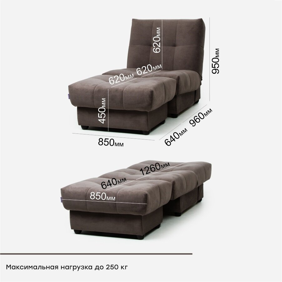 10 цен на Диван мягкий кресло и пуф Венера механизм клик - кляк, материал износостойки велюр, цвет коричневый, Мебельная Фабрика Аврора