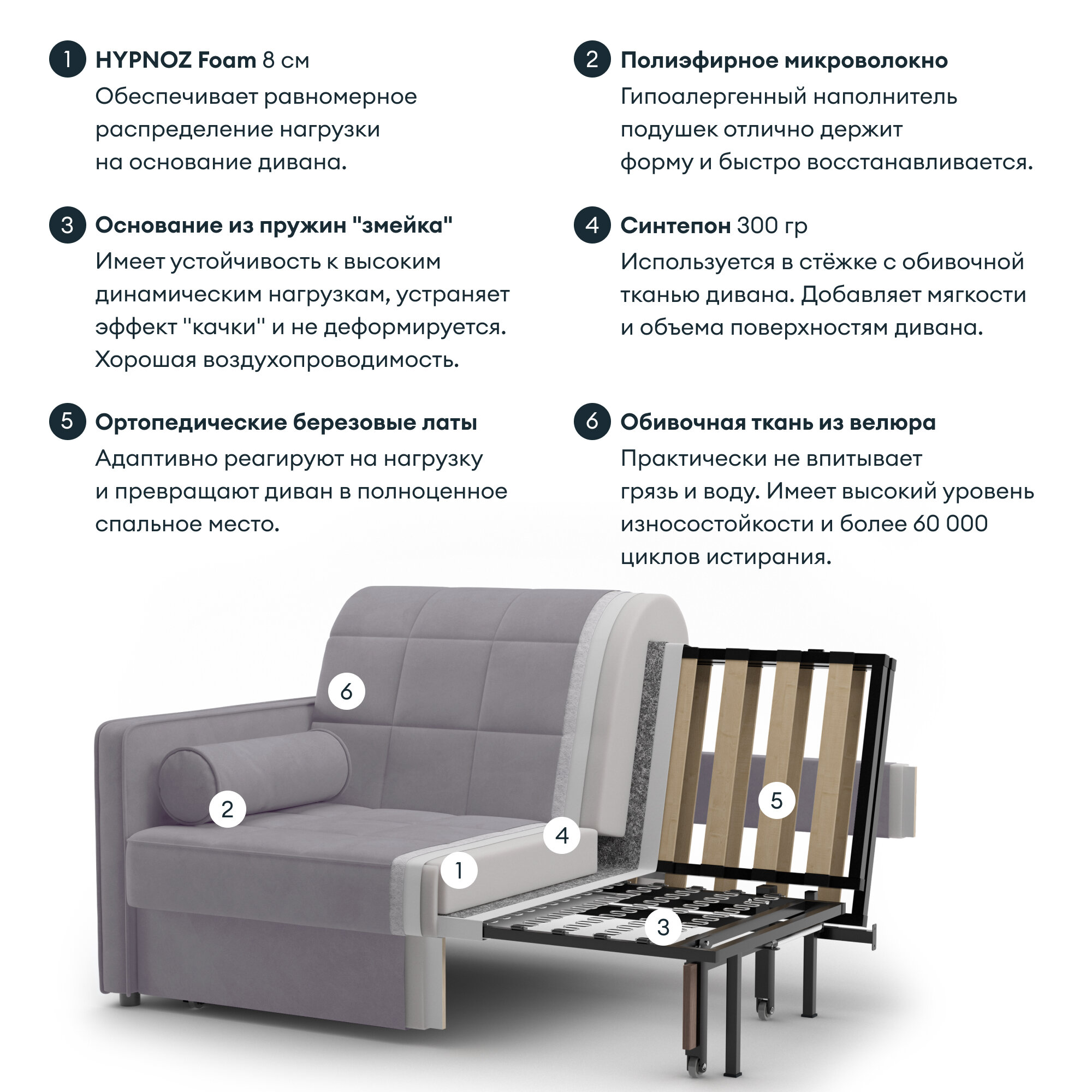 Кресло-кровать, Прямой диван HYPNOZ Palma, механизм Аккордеон, Светло-серый, 94х103х92 см 32 590 ₽