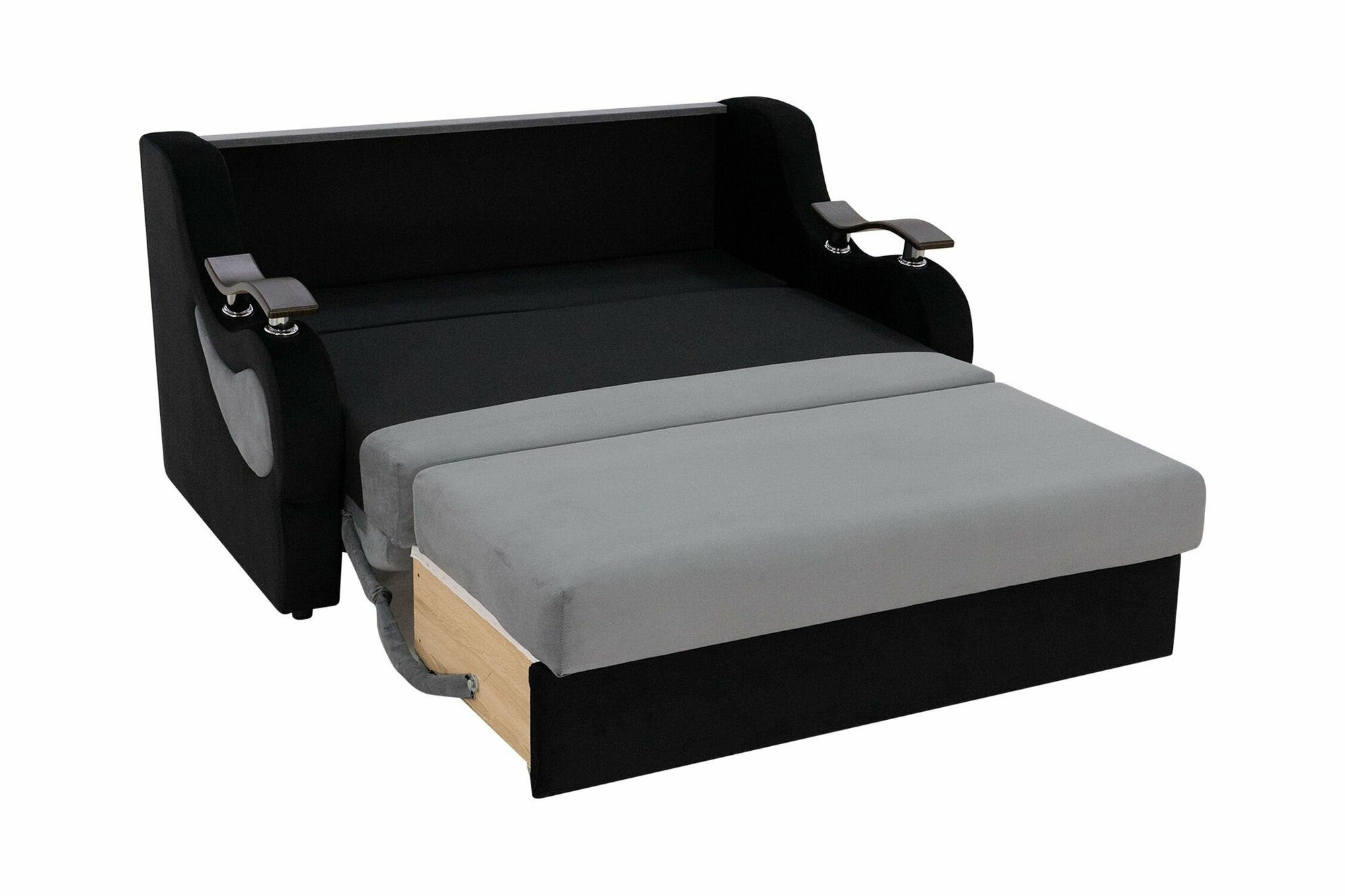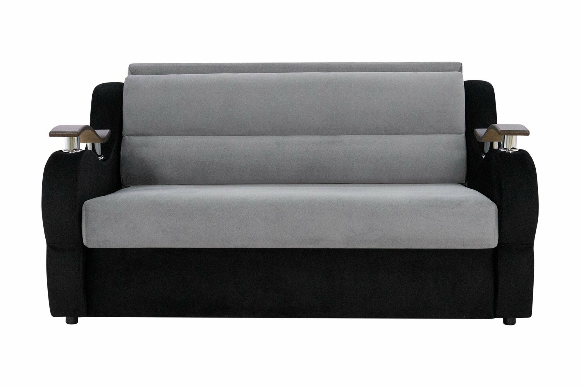 Диван-кровать аккордеон, компактный спальное место 120х200, серый / венге, матрас ППУ, габарит 175 см со столиком и ящиком для белья