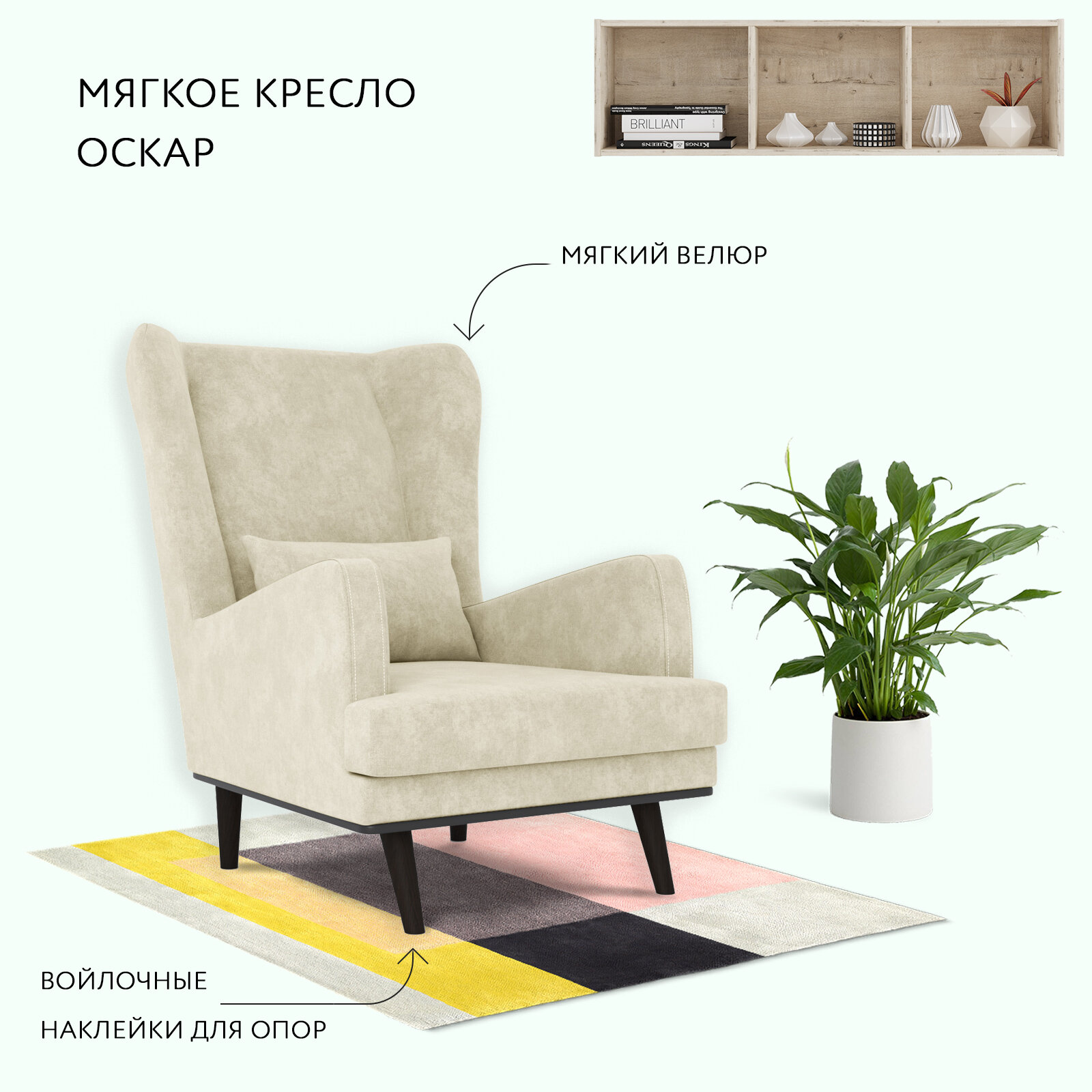 Кресло ОБСТАНОВКА. РУ Вегас мягкое с ушами, для дома, велюр Velour 21 16 690 ₽