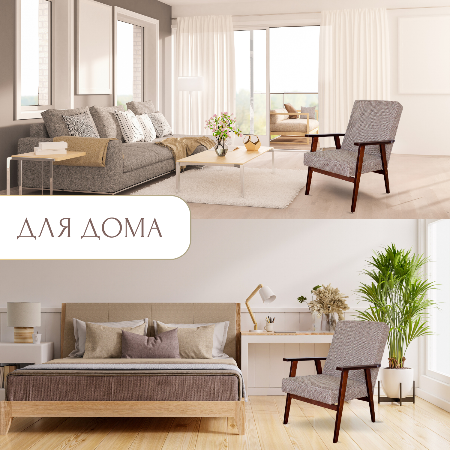Кресло мягкое с подлокотниками "Купер" для дома, дачи, офиса, бежевый информация: