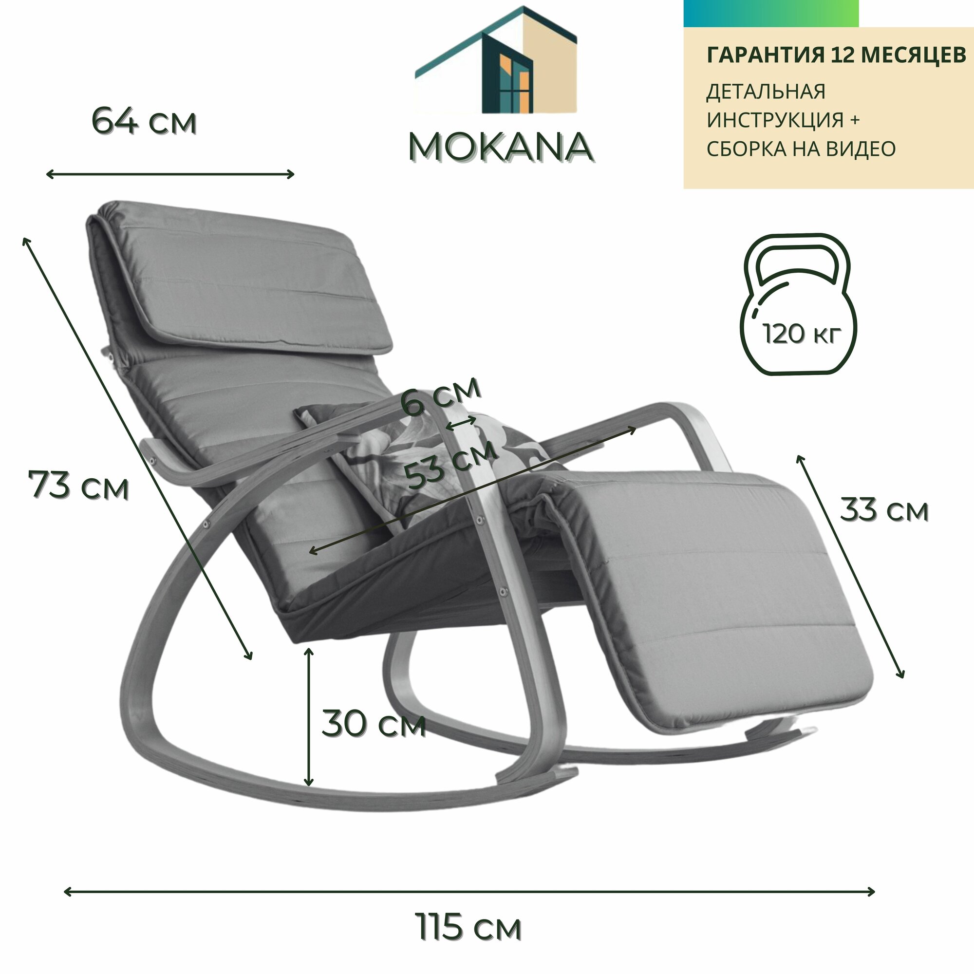 Кресло-качалка, коричневое, с раскладной подставкой для ног информация: