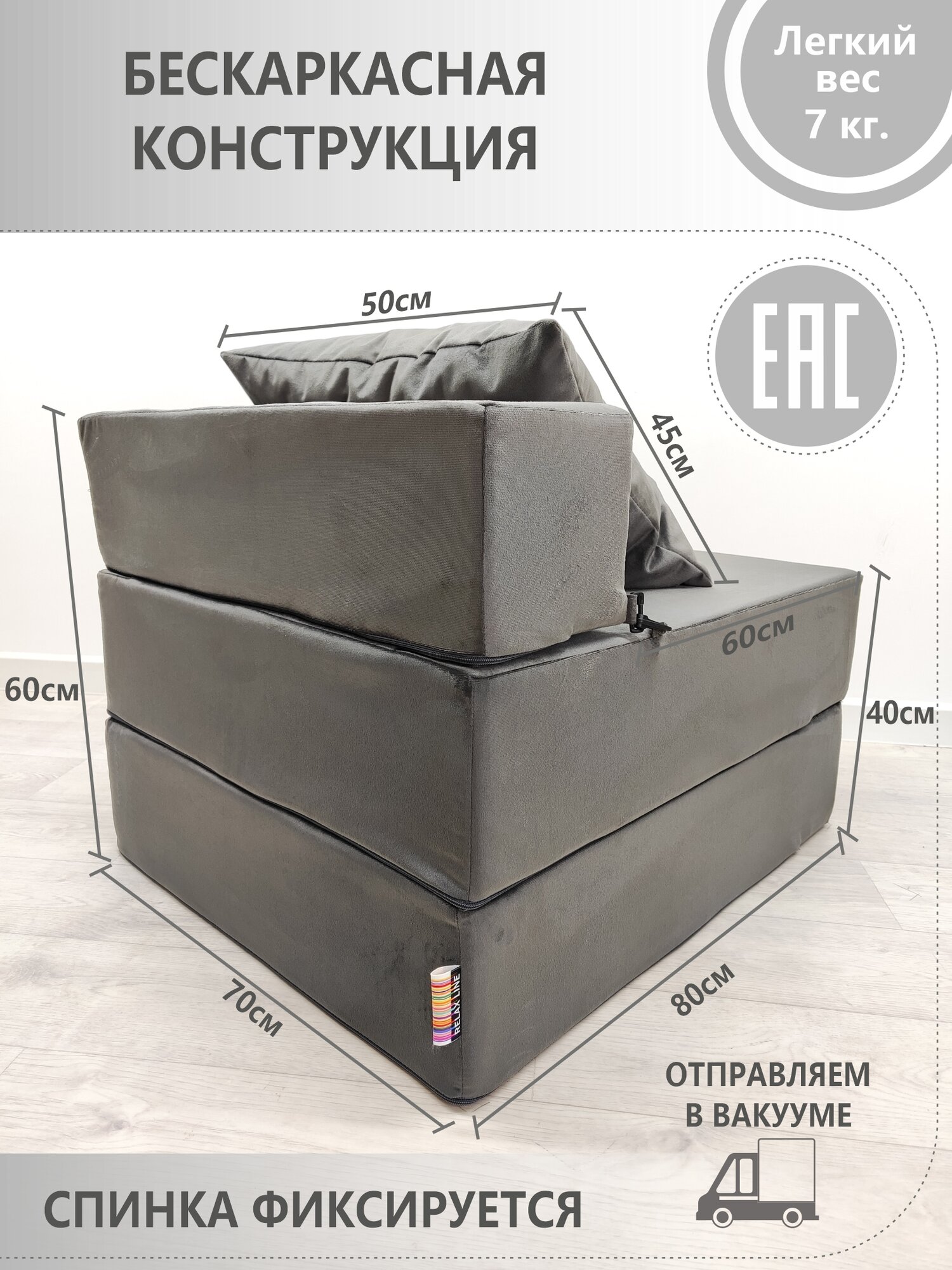 Отзывы на Бескаркасное раскладное кресло- кровать Relaxline Квадро принт раскладной матрас , велюр серый