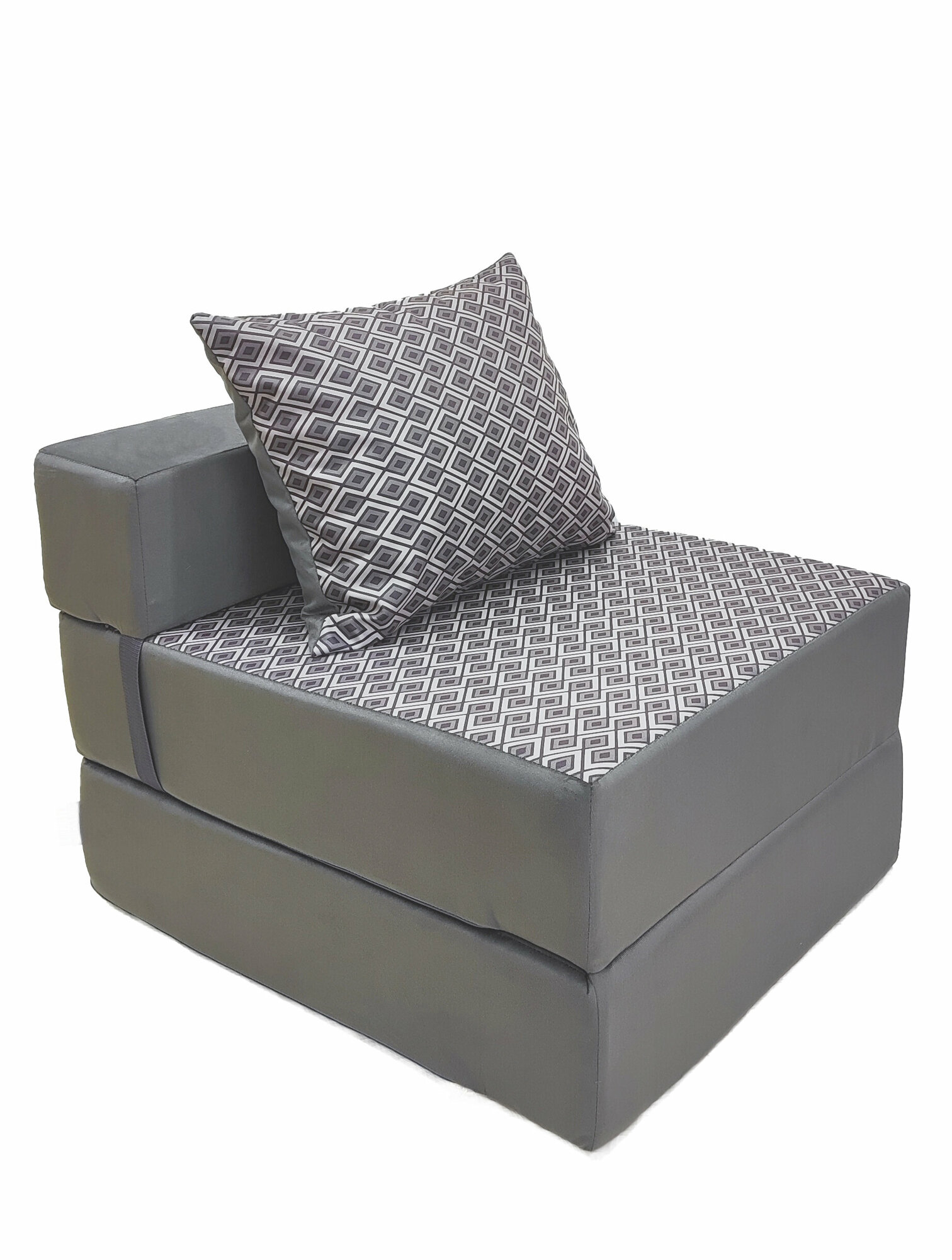 Бескаркасное раскладное кресло- кровать Relaxline Квадро принт раскладной матрас , велюр серый информация: