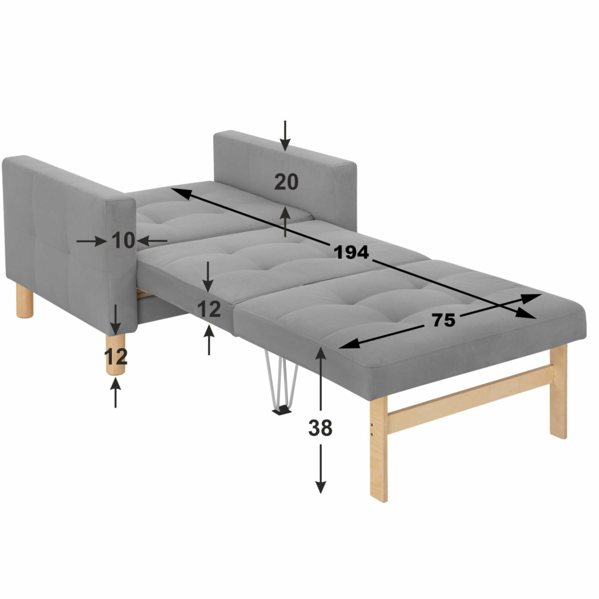Отзывы на Кресло-кровать Монро, 95*80*81, спальное 75*194, велюр серый, Велутто 32