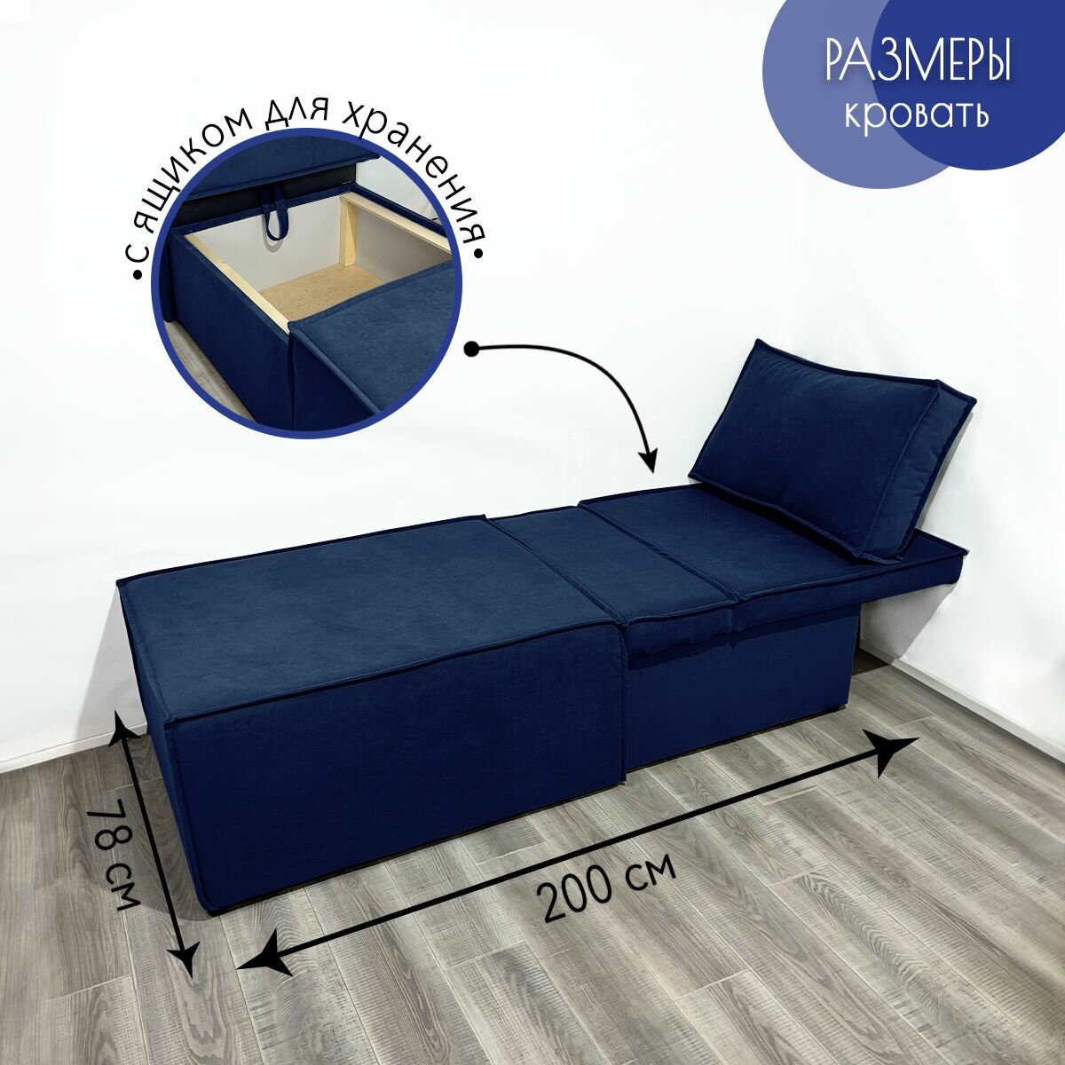 Кресло кровать раскладное для дома с ящиком, велюр синий 74x77x106 см 18 490 ₽