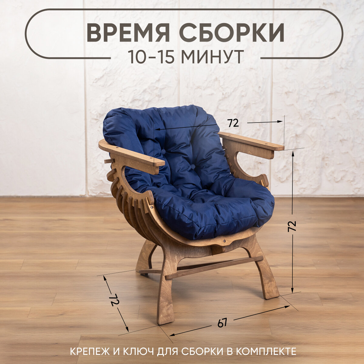 Кресло Ракушка для отдыха синий + темный дуб 14 849 ₽