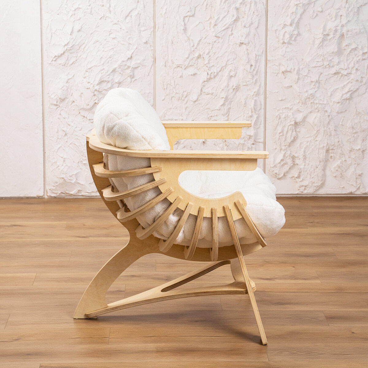 Кресло Ракушка для отдыха букле белый + светлый дуб информация: