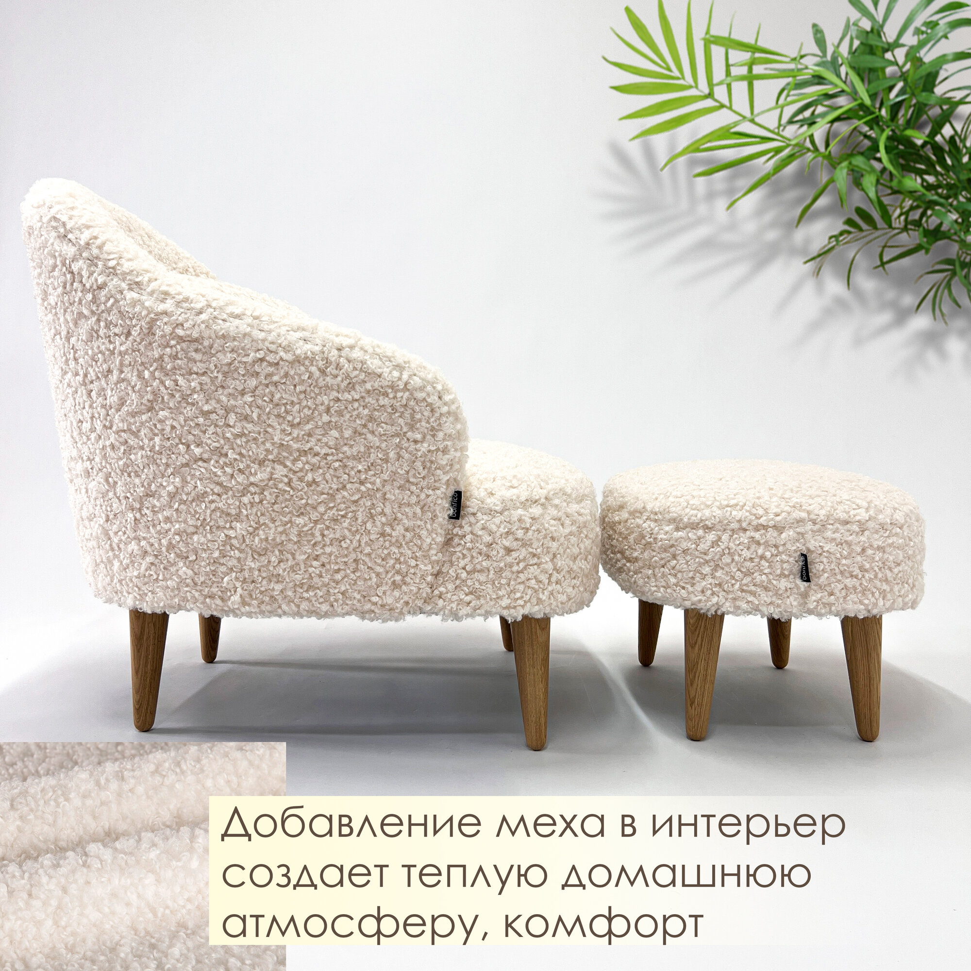 Отзывы на Комплект кресло Унно + пуф , барашек цвет Пломбир, кресло в гостиную, опоры массив дуба