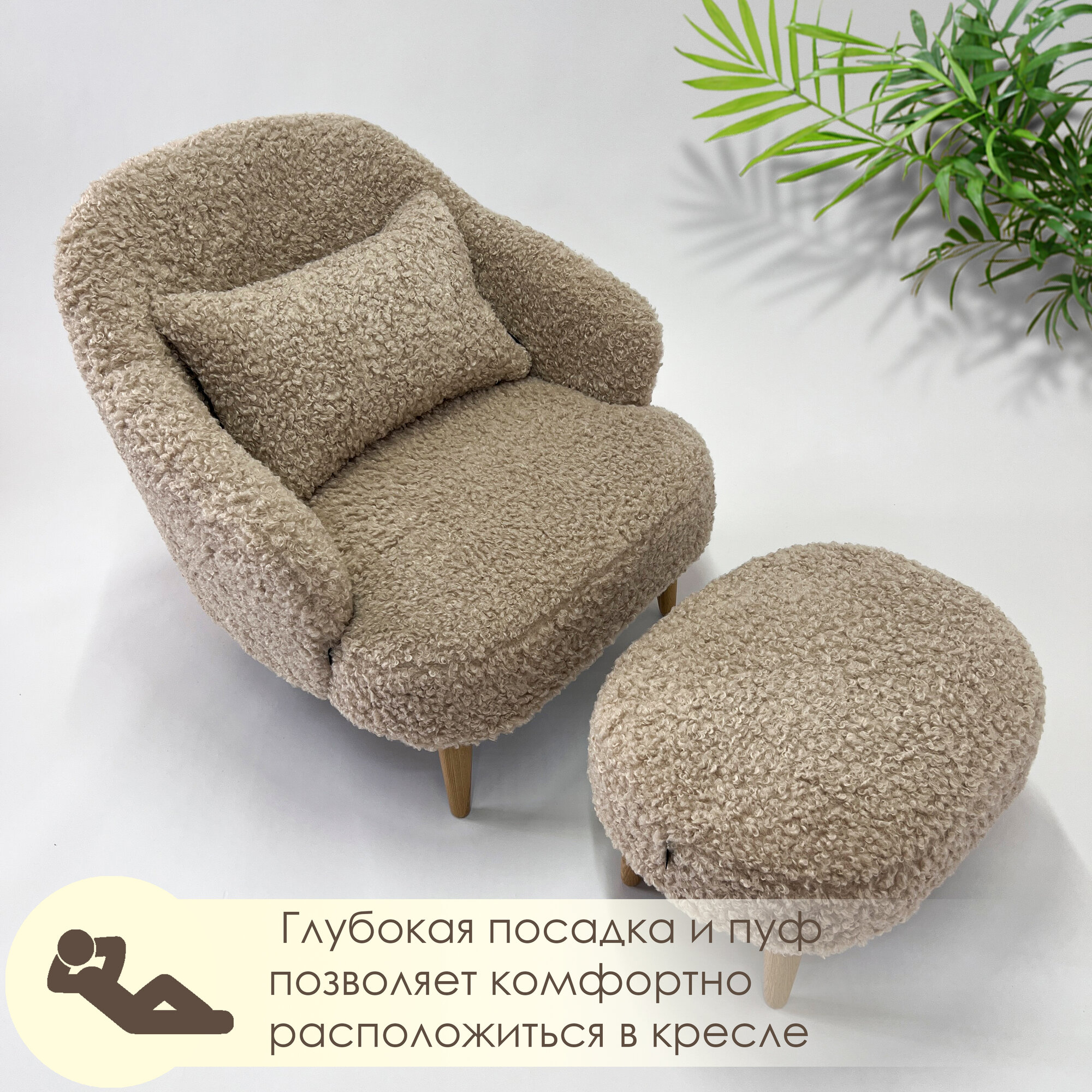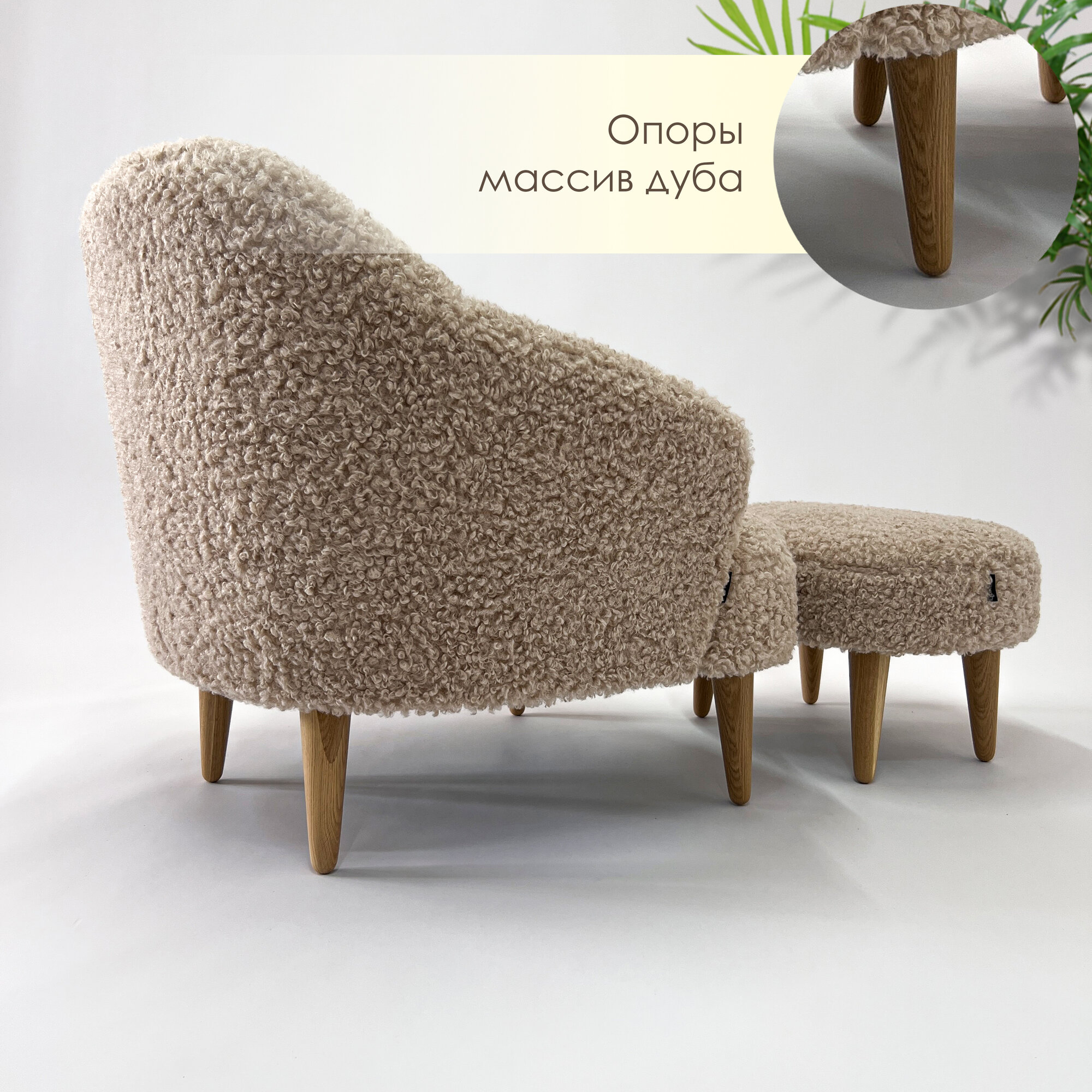 Отзывы на Комплект кресло Унно + пуф , коричневый барашек , кресло в гостиную, опоры массив дуба