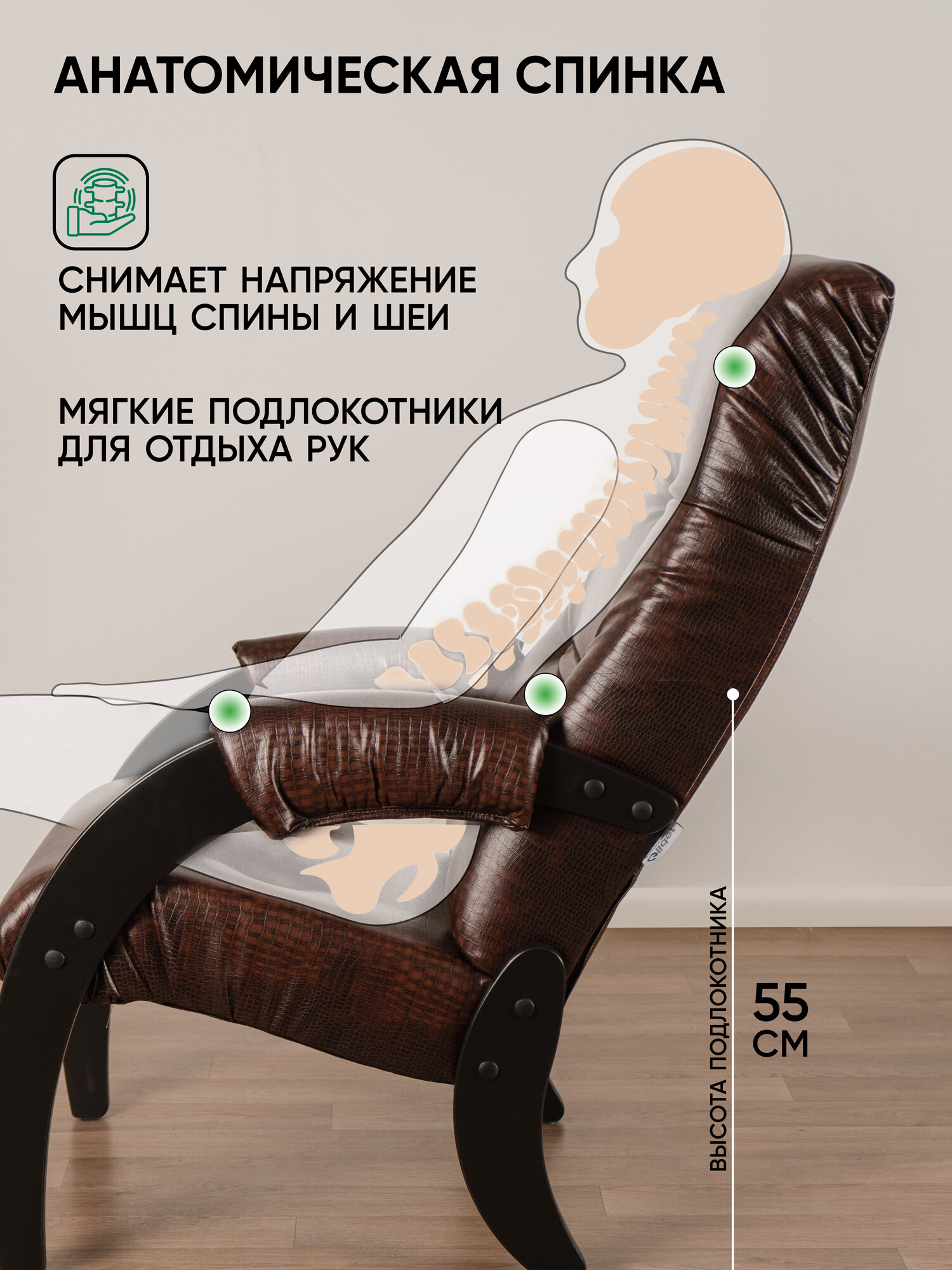 Кресло мягкое для отдыха, дома и дачи Glider 61 с мягкими подлокотниками в эко-коже, цвет коричневый/черный информация: