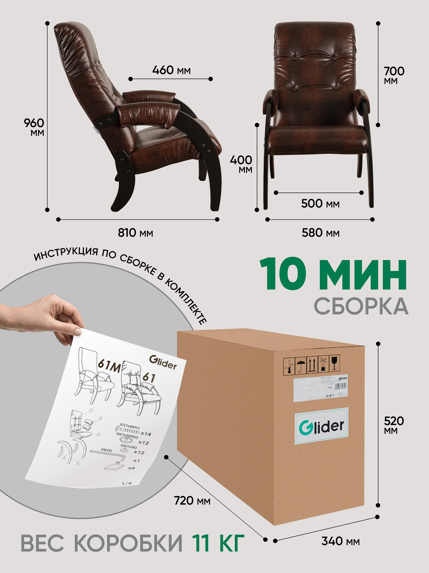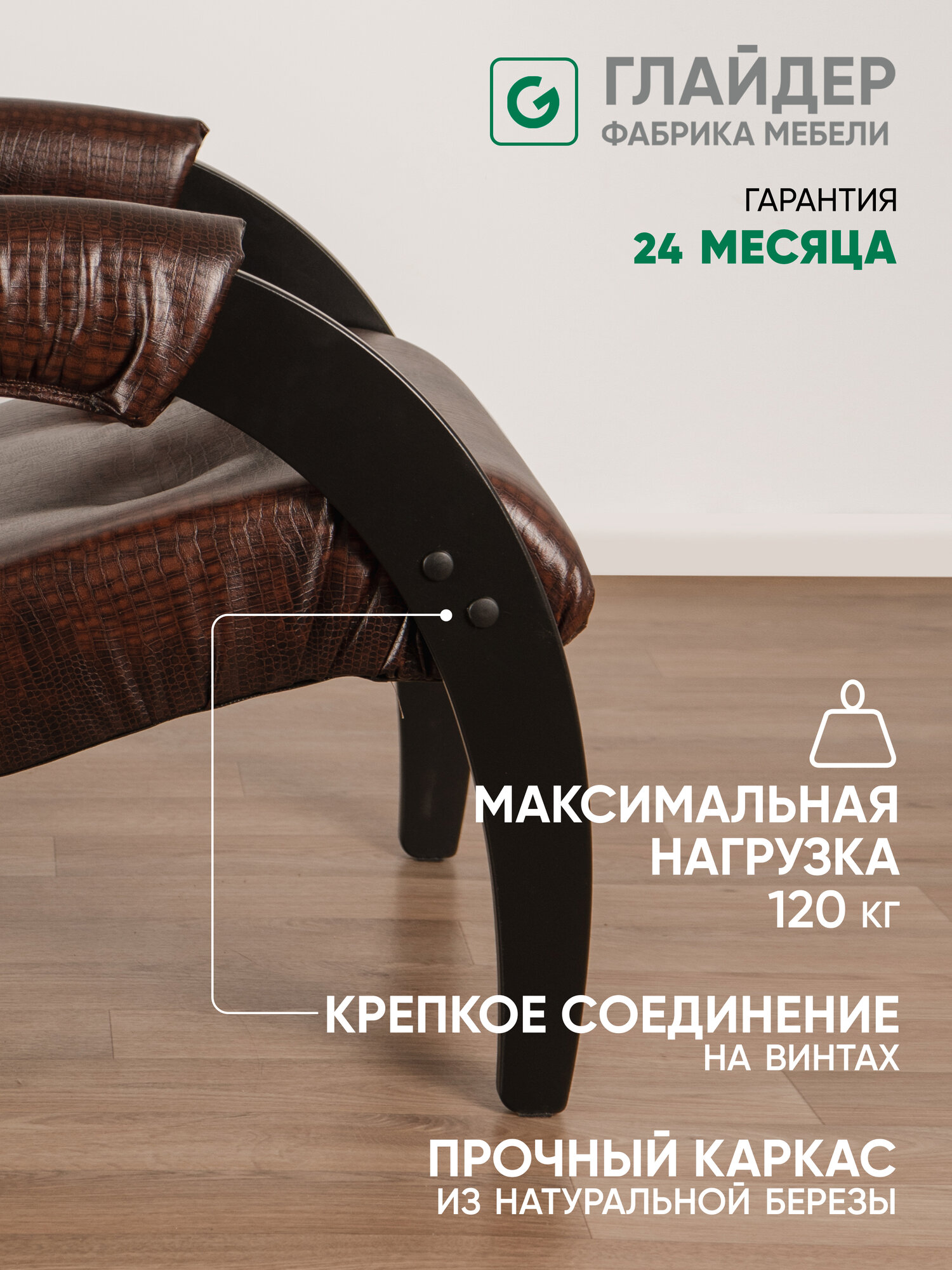 Отзывы на Кресло мягкое для отдыха, дома и дачи Glider 61 с мягкими подлокотниками в эко-коже, цвет коричневый/черный