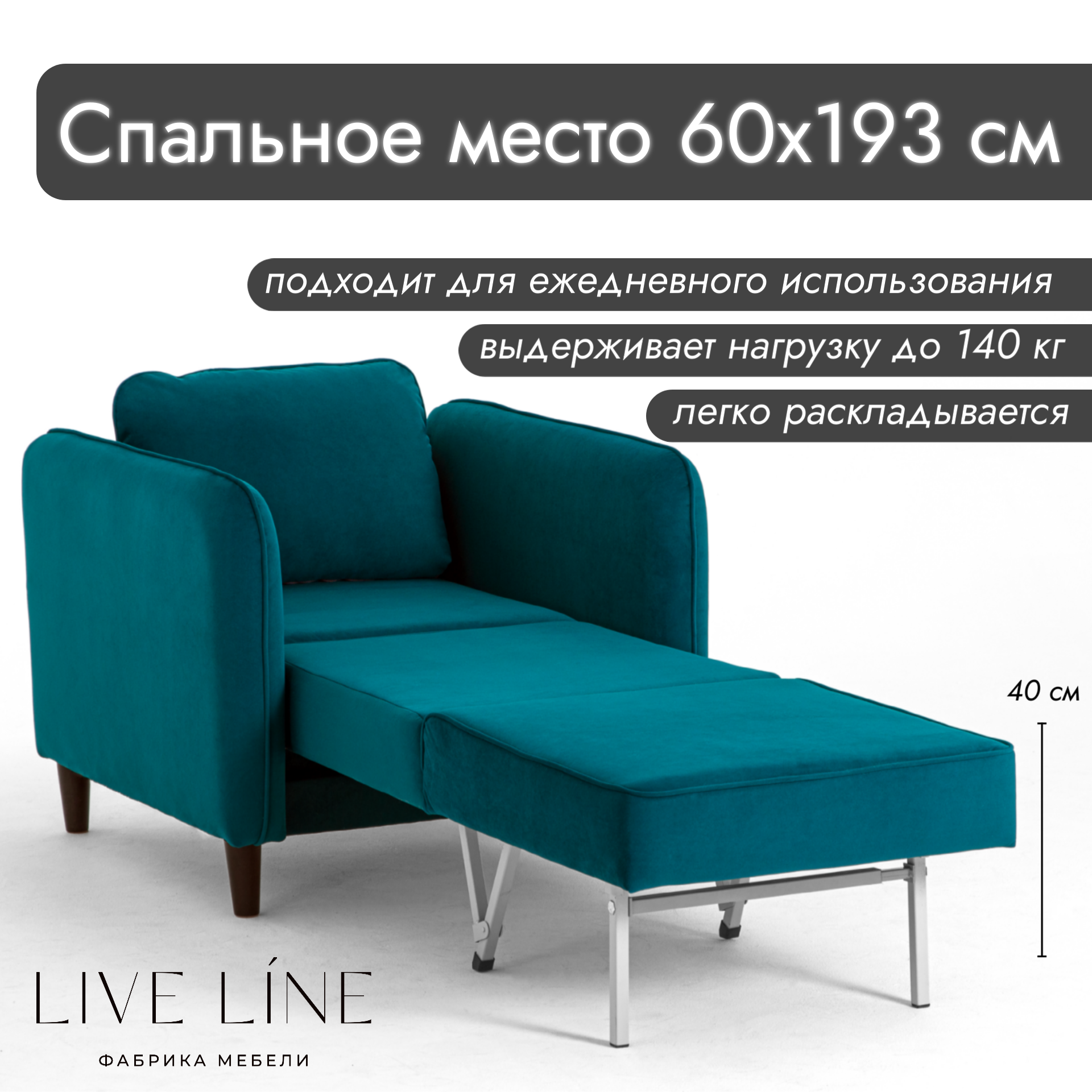 Кресло-кровать Live Line"Mario" 85х87см бирюзовый велюр, на ножках 33 500 ₽